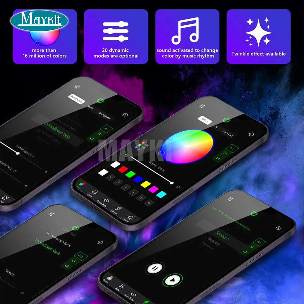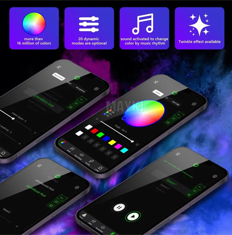 【Multicolor &Updated Bluetooth APP Control】: with 28key remote controller, easy to choose all light change modes,including static colors ,jump, fade, flash and breath mode, allowing to combine RGB colors with pure white light to create other colors, In addition, there will be more than 16 million colors combining with static, dynamic, sound control and twinkle mode by APP or Bluetooth control