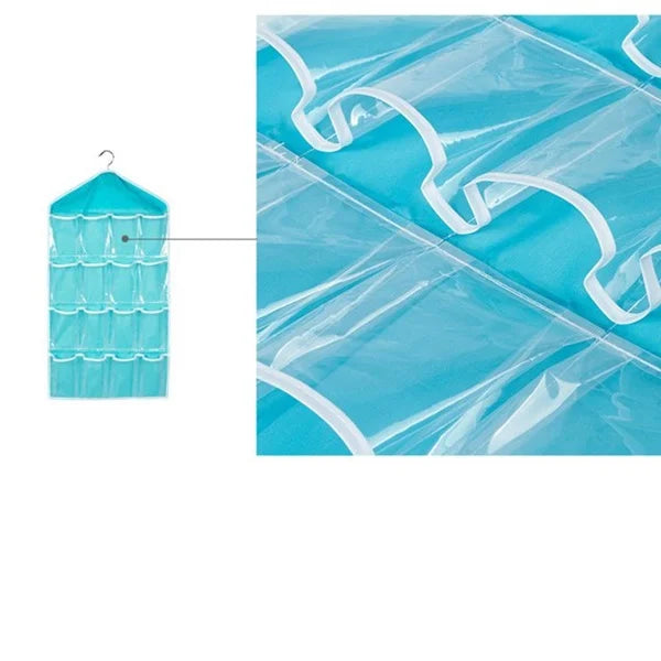 Categorize and Conquer: Boasting 16 spacious pockets, this innovative organizer empowers you to categorize and compartmentalize your entire wardrobe. Dedicate sections to shirts, pants, scarves, hats, accessories, or any other clothing items that tend to create clutter in your closet. This system of organization ensures everything has a designated spot, maximizing space utilization and keeping your clothes neatly arranged. No more hunting through overflowing drawers – a quick glance at the organizer reveals the item you need, readily accessible for a smooth and efficient outfit selection. Farewell Frustration: Bid adieu to the frantic morning scramble searching for misplaced clothes. With everything neatly categorized in clear pockets, frustration becomes a thing of the past. The hanging design allows you to see your entire wardrobe at a glance, eliminating wasted time spent sifting through drawers or piles. Simply walk into your closet, identify your desired outfit, and you're ready to go!Premium Quality for Long-Lasting Performance (Durable Hanging Wardrobe Organiser)