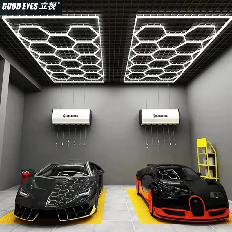3-Year Warranty Honeycomb LED Car Detailing Ceiling Light with Border Hexagon Led Light for Auto Car Body Repair Workshop Gym