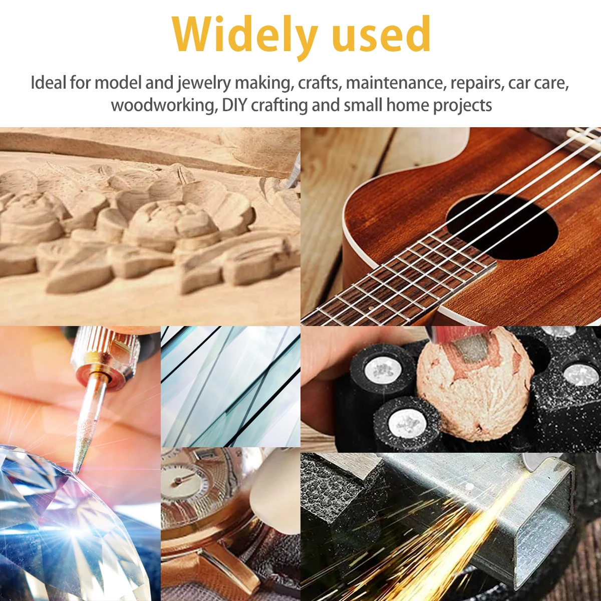 [Wide Application] Rotary tool accessories are widely used for all types of detail work on hard and fine materials, such as jade, ceramics, glass, metal, wood, plastic, hardened steel, cast iron and stainless steel.