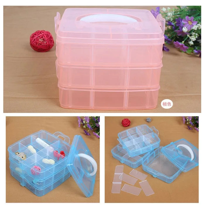 3 Layers 18 Grid Plastic Transparent Jewelry Storage Box Case Craft Boxes Square Portable Accessories Box for Earrings, Ring Small Stuffs Makeup Cosmetic Organizer, Storage Box Basket Container