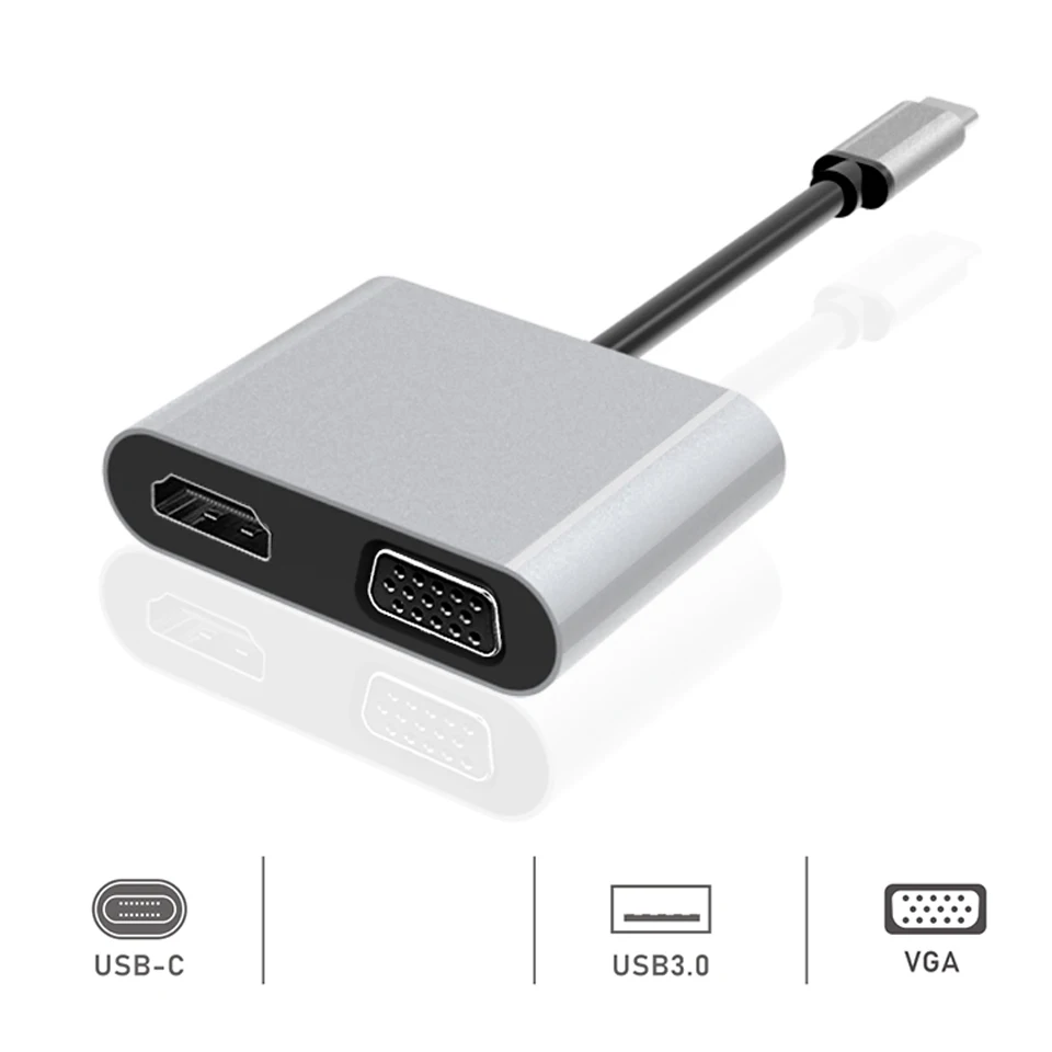 4 in 1 4K Multi USB Type C HUB to USB 3.0 HD VGA PD Charger Docking station Adapter for MacBook Notebook Samsung Galaxy S8 PC