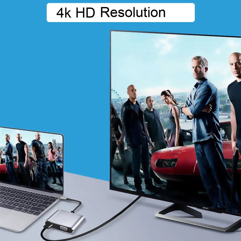 Nsendato type-C hub with 4 ports: 1 USB3.0, Mini DP, HD, VGA, Type-C. Applies to all Type-C laptops.