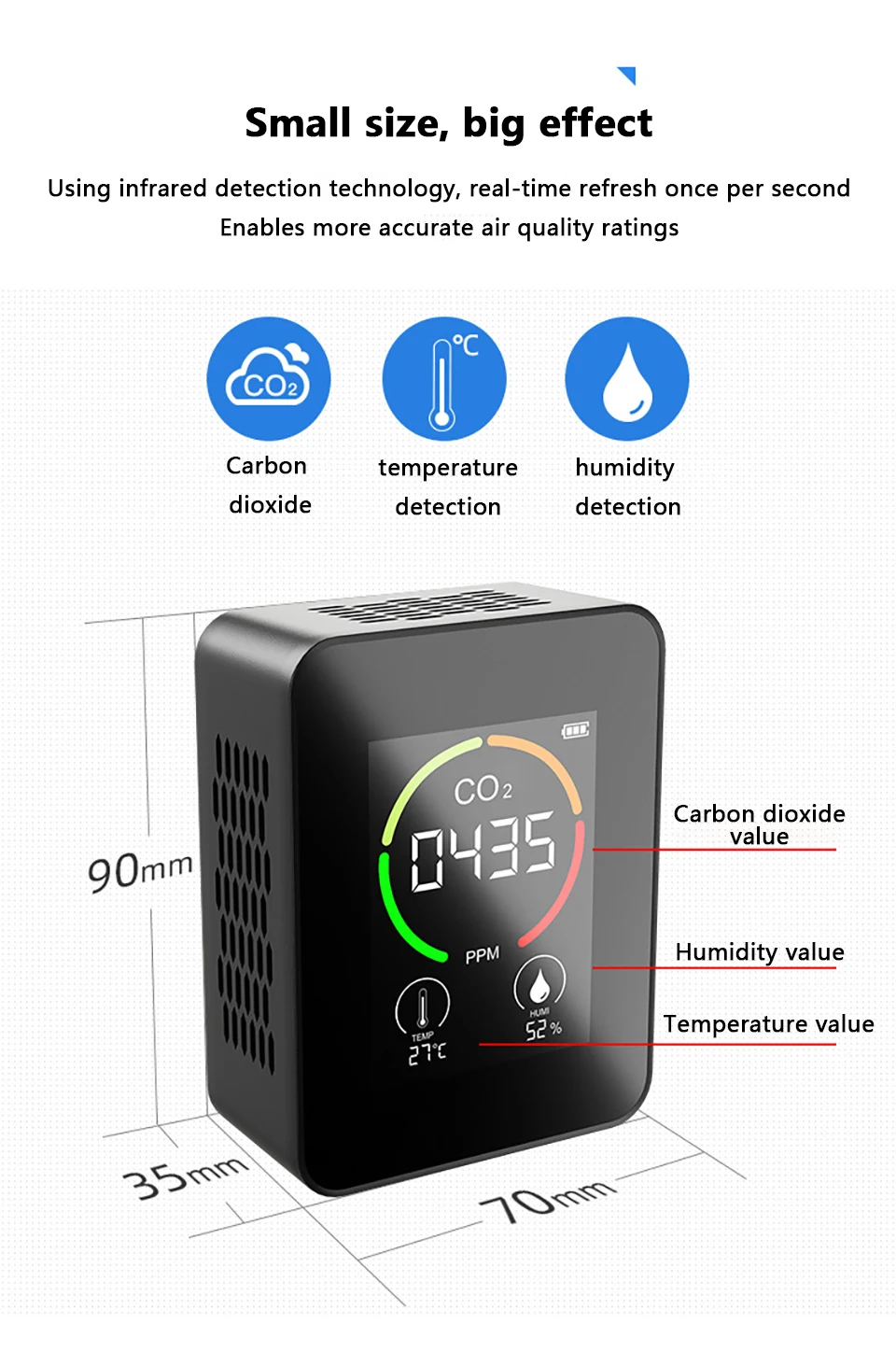 Air Monitor CO2 Carbon Dioxide Detector 3 in 1 Greenhouse Warehouse Quality Temperature Humidity Fast Measurement