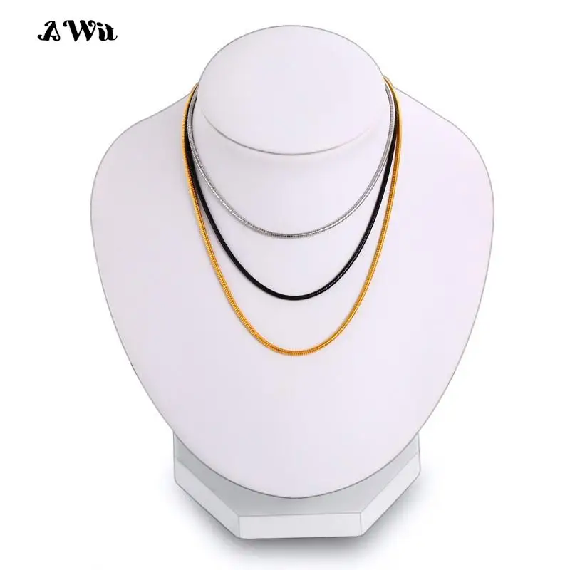 AWit Inoxidable Gold Color Chains 1-5mm Stainless Steel Snake Chains Necklace Twist Rope Jewelry Women Long Chains Accessories