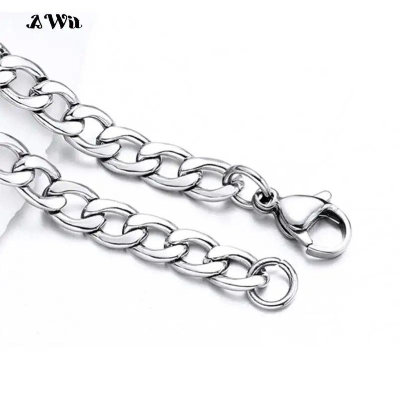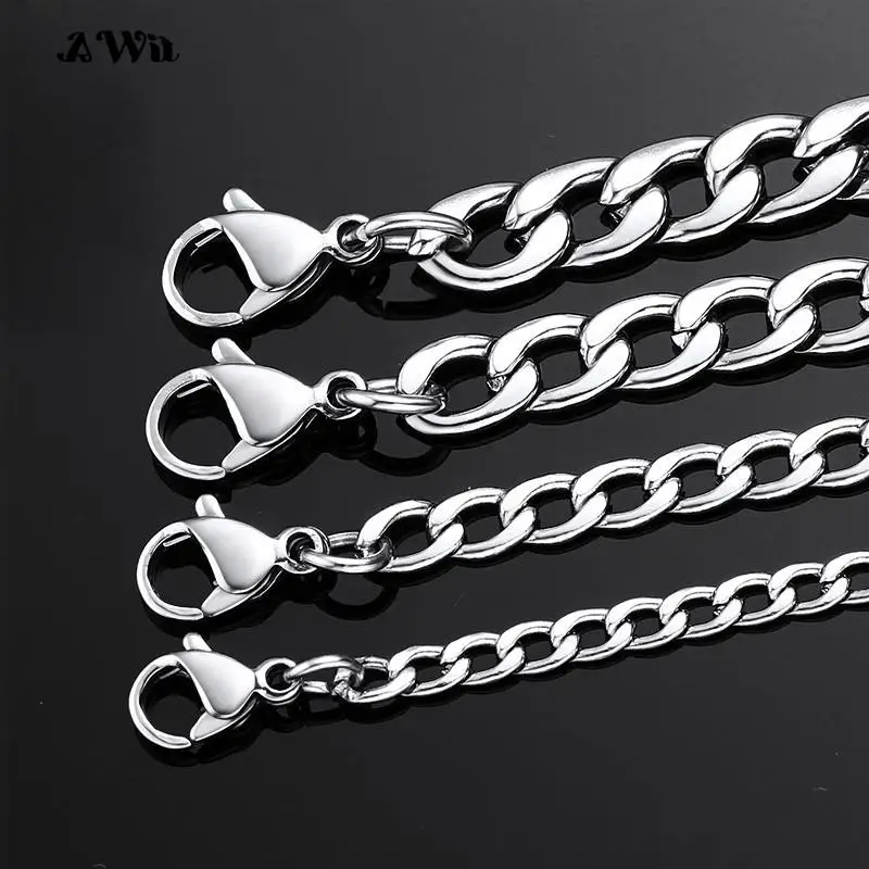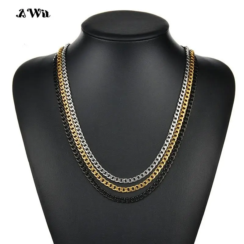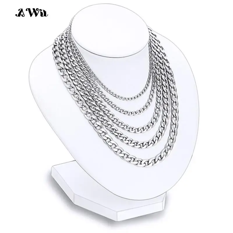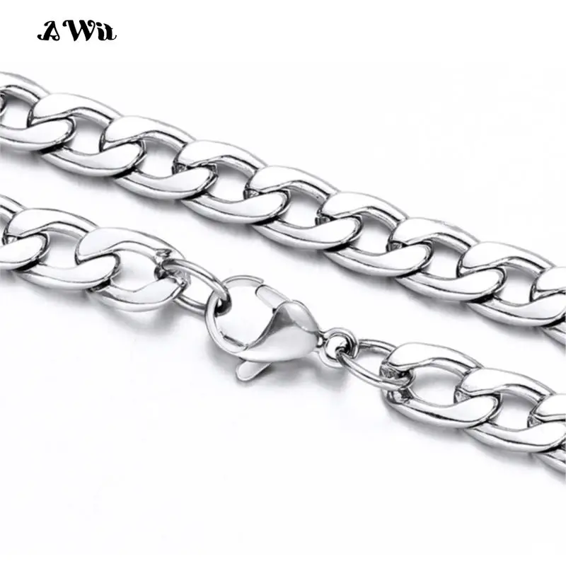 AWit Long Stainless Steel Chain Necklace Hip Hop for Women Men on The Neck Fashion Jewelry Accessories Choker Valentine's Day