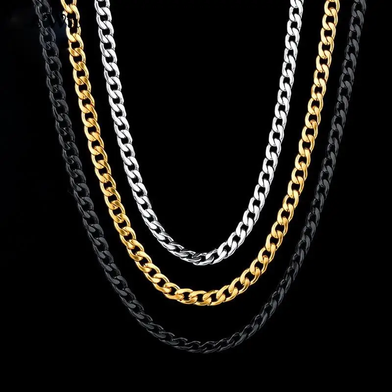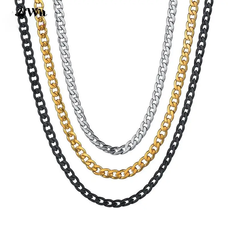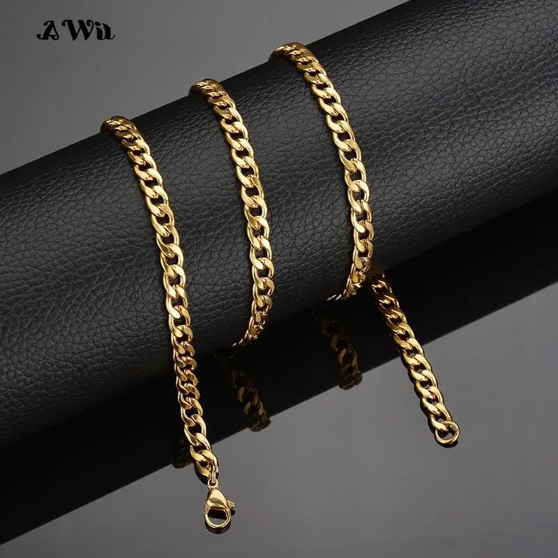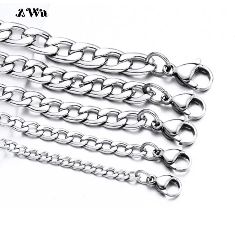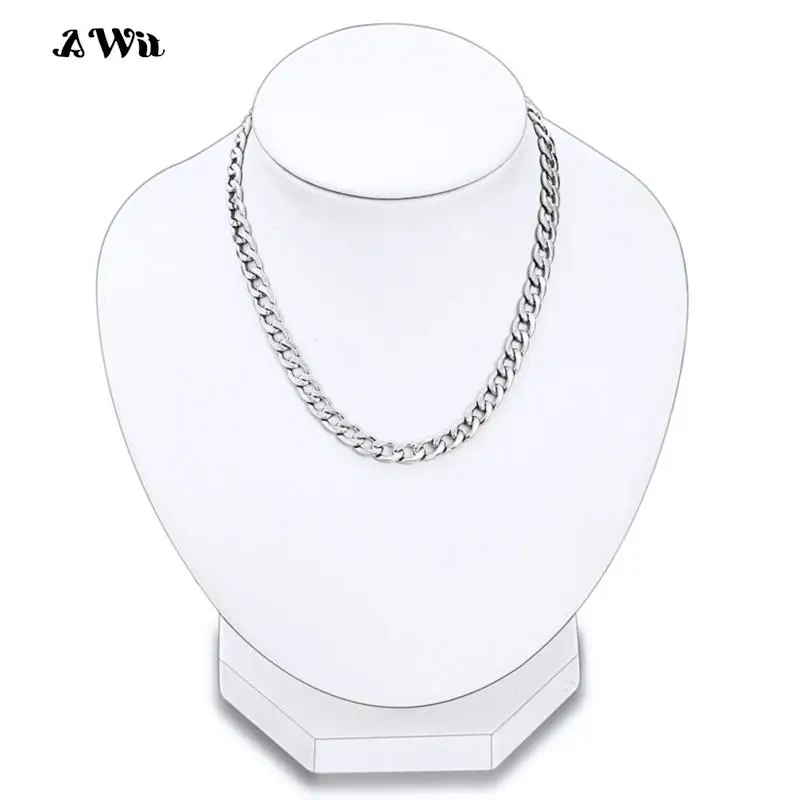 AWit Long Stainless Steel Chain Necklace Hip Hop for Women Men on The Neck Fashion Jewelry Accessories Choker Valentine's Day
