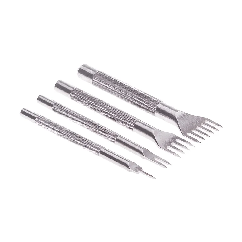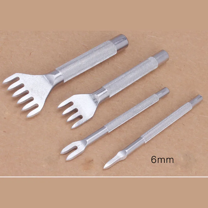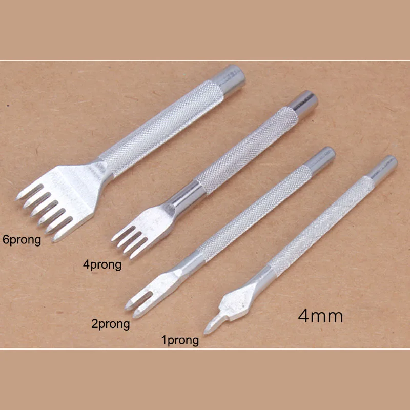 Baver Steel Leather Craft Diamond Chisel Stitching Hole Punch Tools 3mm 4mm 5mm 6mm 1 2 4 6 Prong 4pcs/set