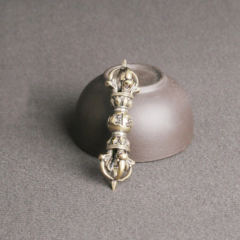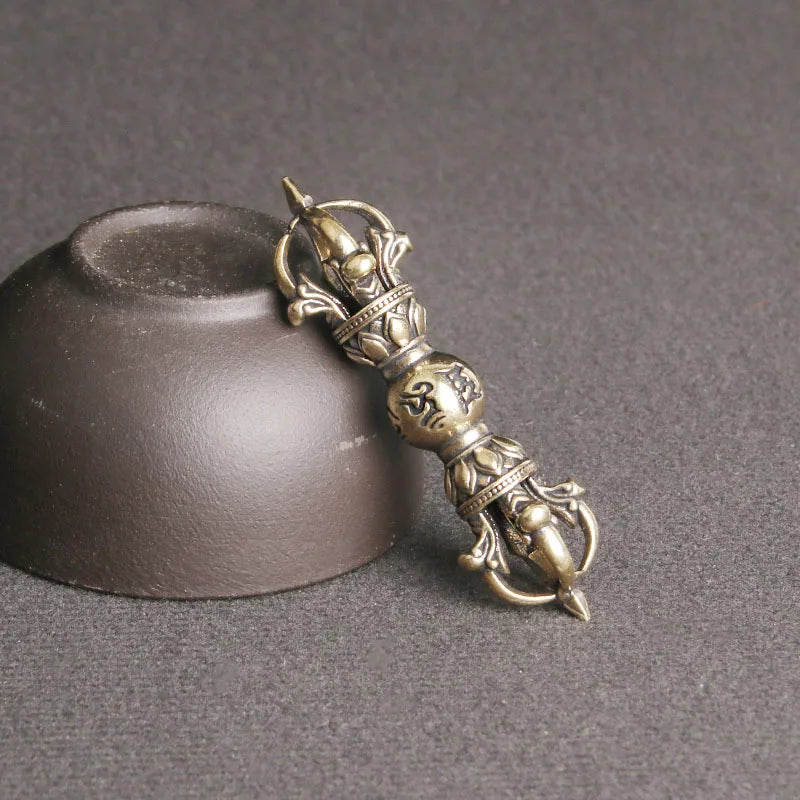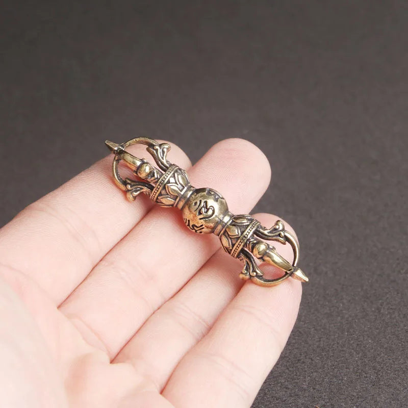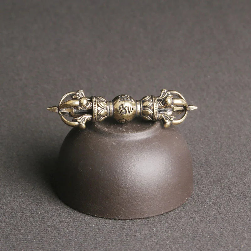 Brass Six-character Proverbs Vajra Pestle Feng Shui Home Decor Crafts Tibetan Religious Instrument Pestle Figurines Ornaments