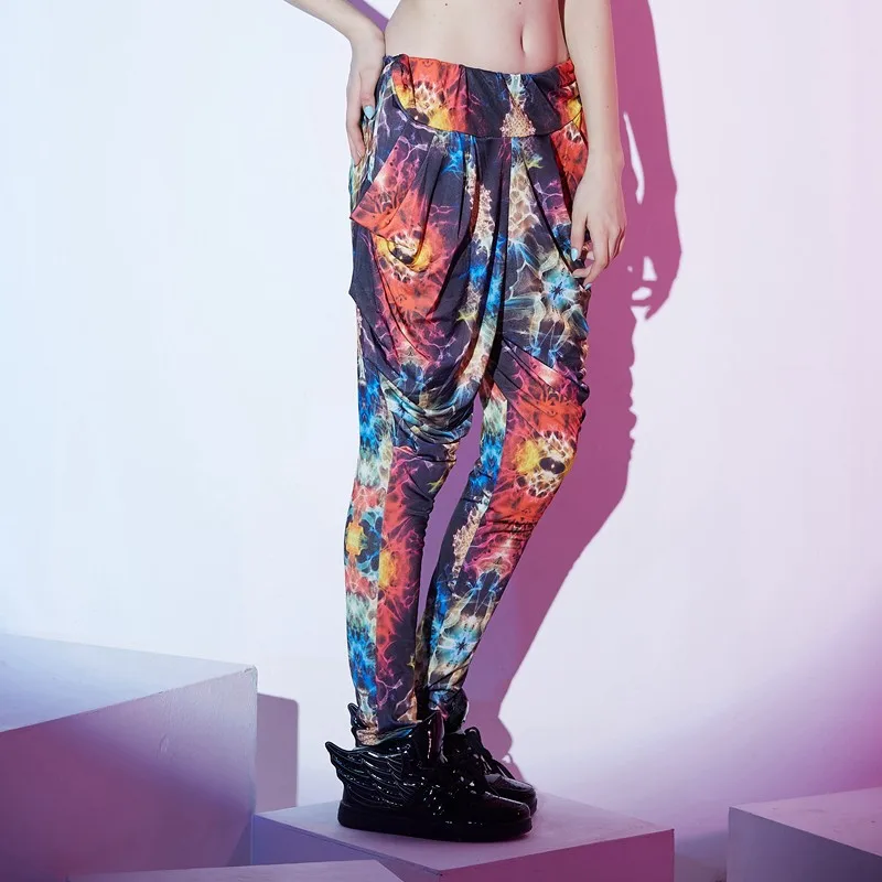 Calças Harem Jazz para Mulheres, Hip Hop, Dance Doodle, Primavera e Verão, Neon Patchwork, Cores Doces, Skinny Sweatpants, Marca