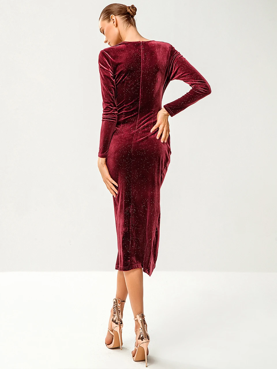 Cinemore Dresses for Women 2022 Elegant Evening Party Dresses Long Sleeves Sexy Sparkly Sequin Velvet Wrap Dress luxury MM1518