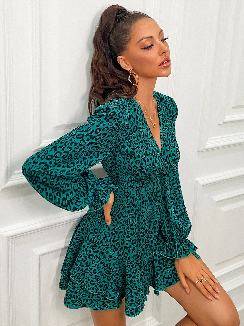 Cinemore Party Dress for Women Dress Womens Elegant Layered Ruffle Hem Leopard Sexy Dress Womens Summer Dress 2022 MM1458-JM