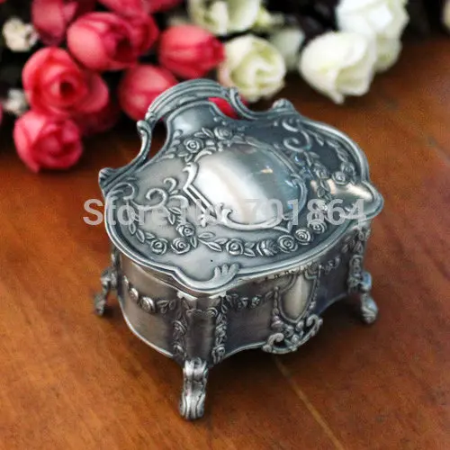 Fashion Jewelry Box Zinc-alloy Metal Trinket Case Flower Design Carved Jewellery Storage Gift Box