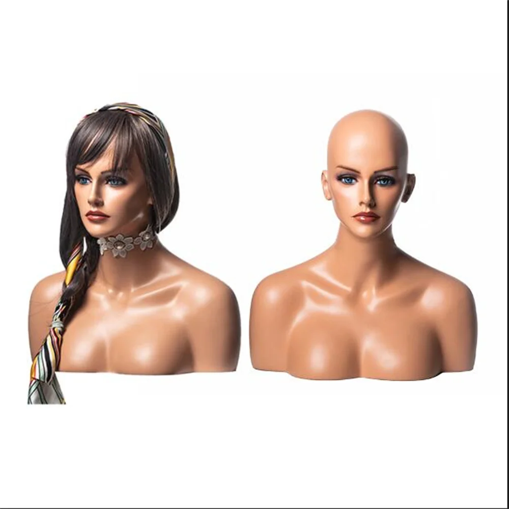 Female Realistic Head Mannequin with Shoulder, No Wig Display Model, Dark Brown and Beige Colors,for Hat Glasses, E185, 20Style