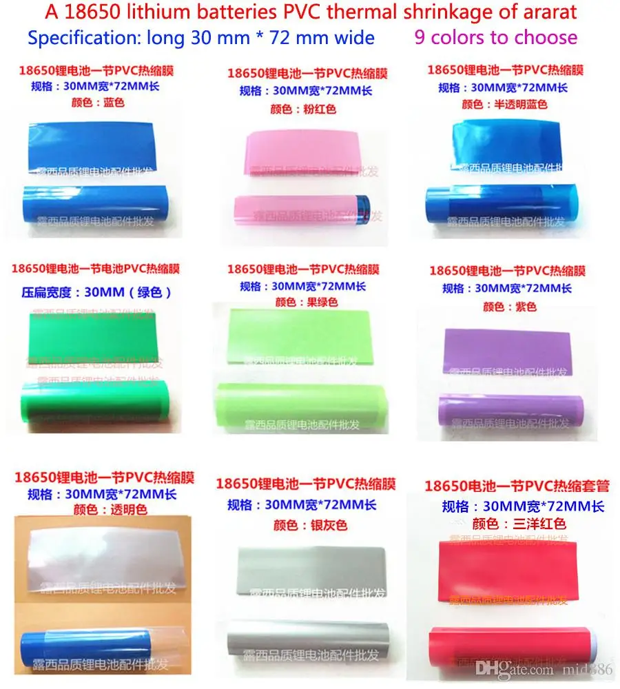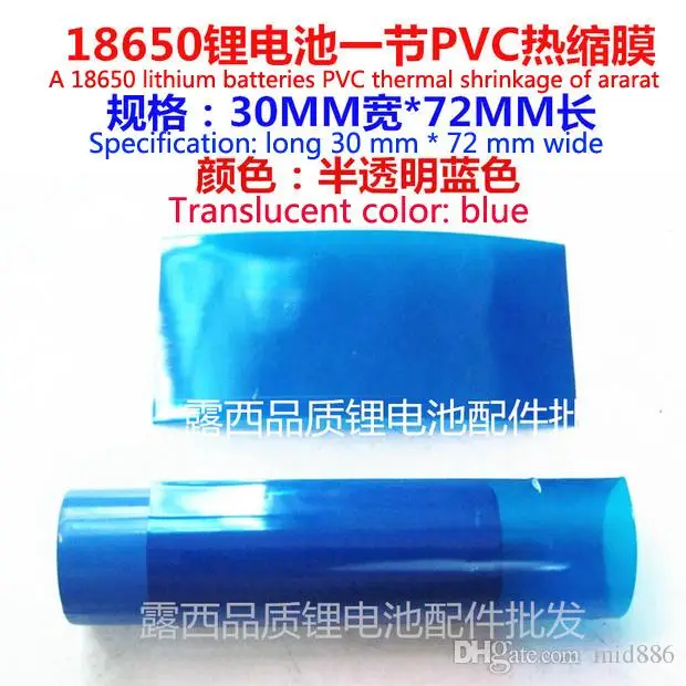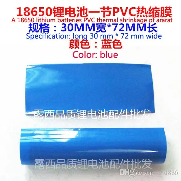 Film thermorétractable en Pvc pour boîtier de batterie, Tube thermorétractable, couleur verte ou bleue, vente en gros, 100 pièces/lot, 18650