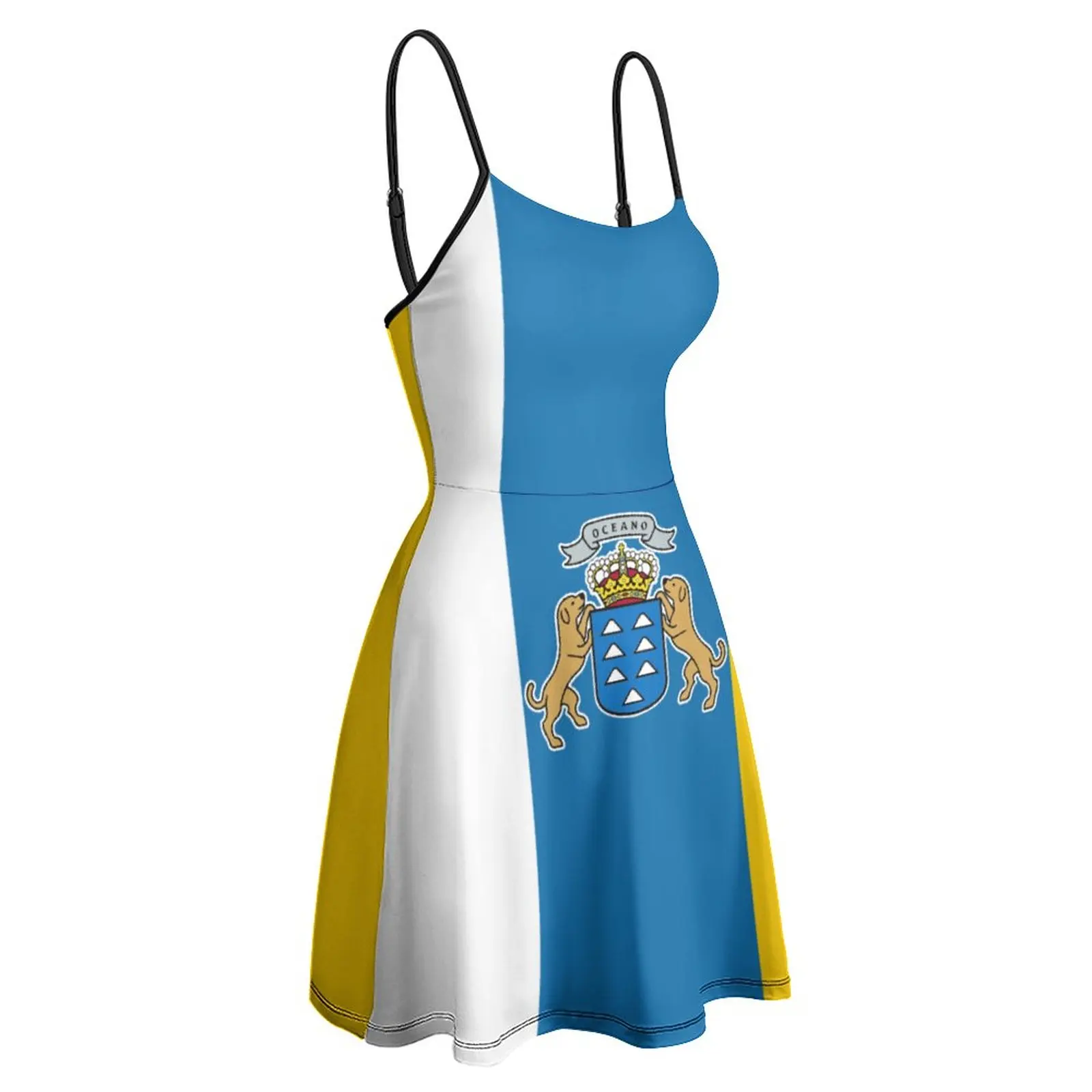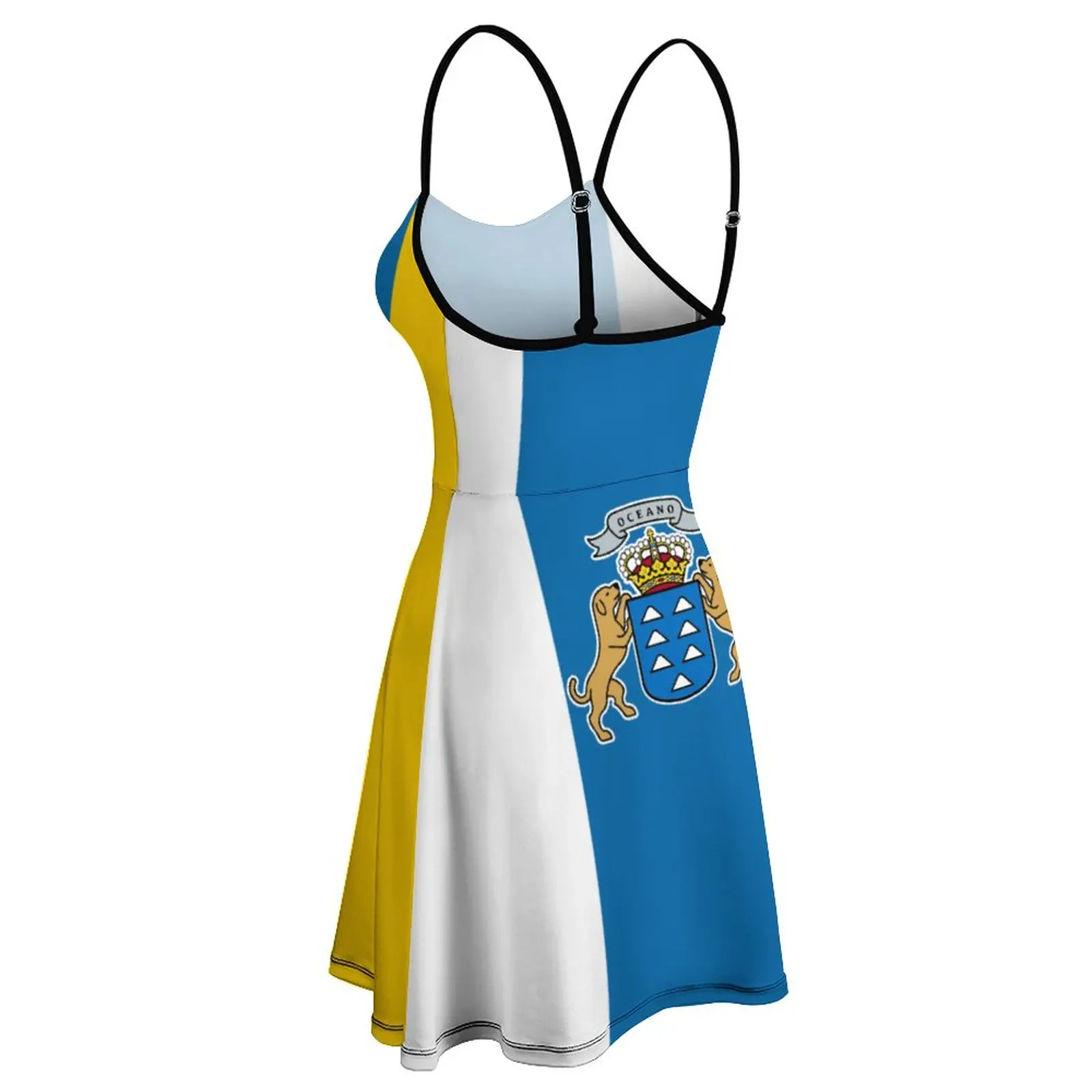 Flag of The Canary Islands Women's Sling Dress Graphic Cool Exotic Woman's Dress Humor Graphic Vacations The Dress