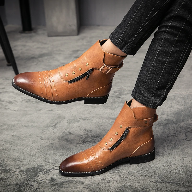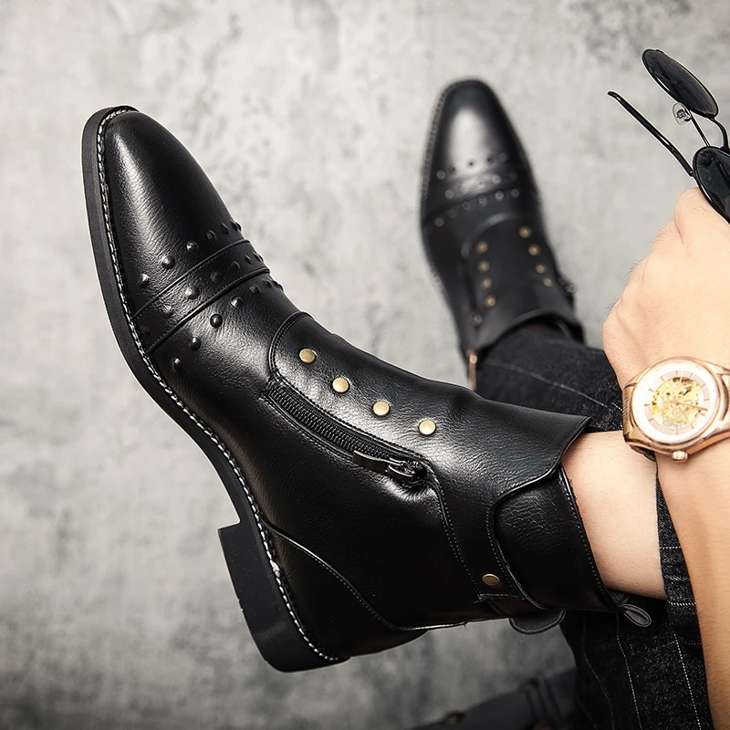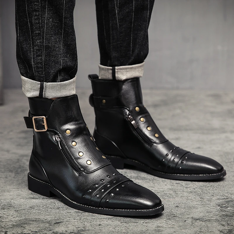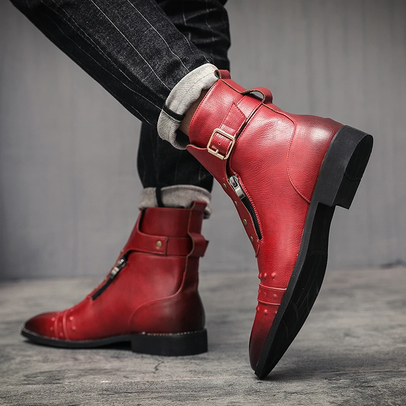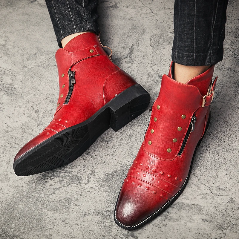 Formal Red Yellow Chelsea Boots for Men Black Business Man Handmade Mens Short Boots Round Toe Slip-On Ankle Boots Free Shipping