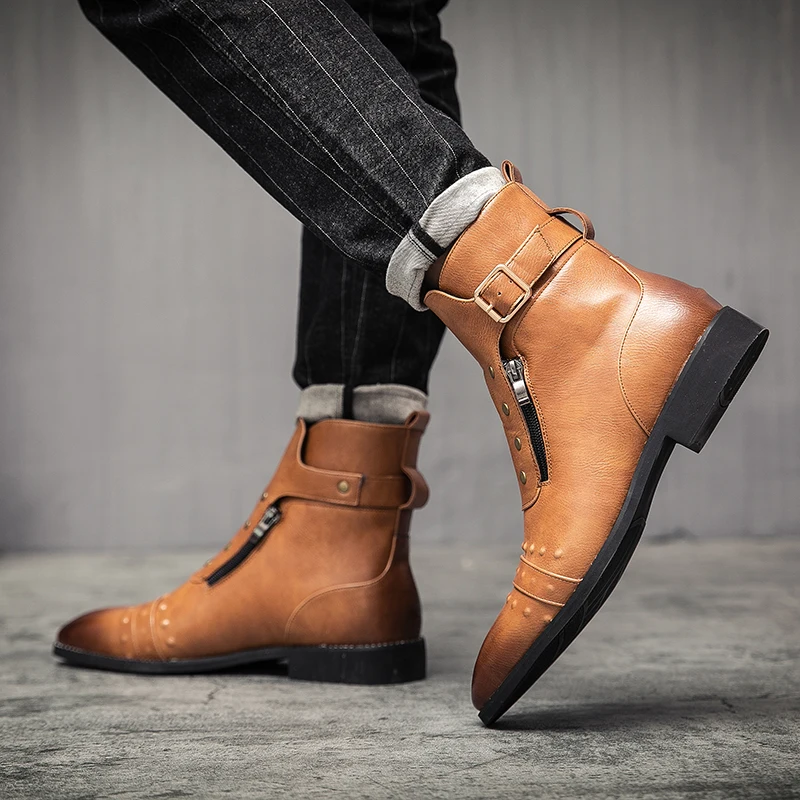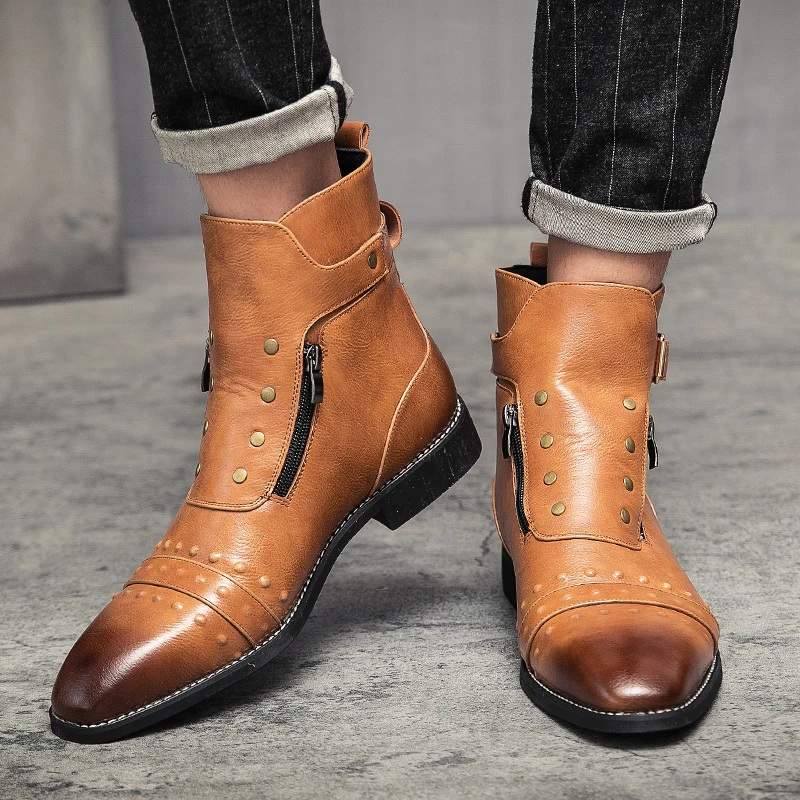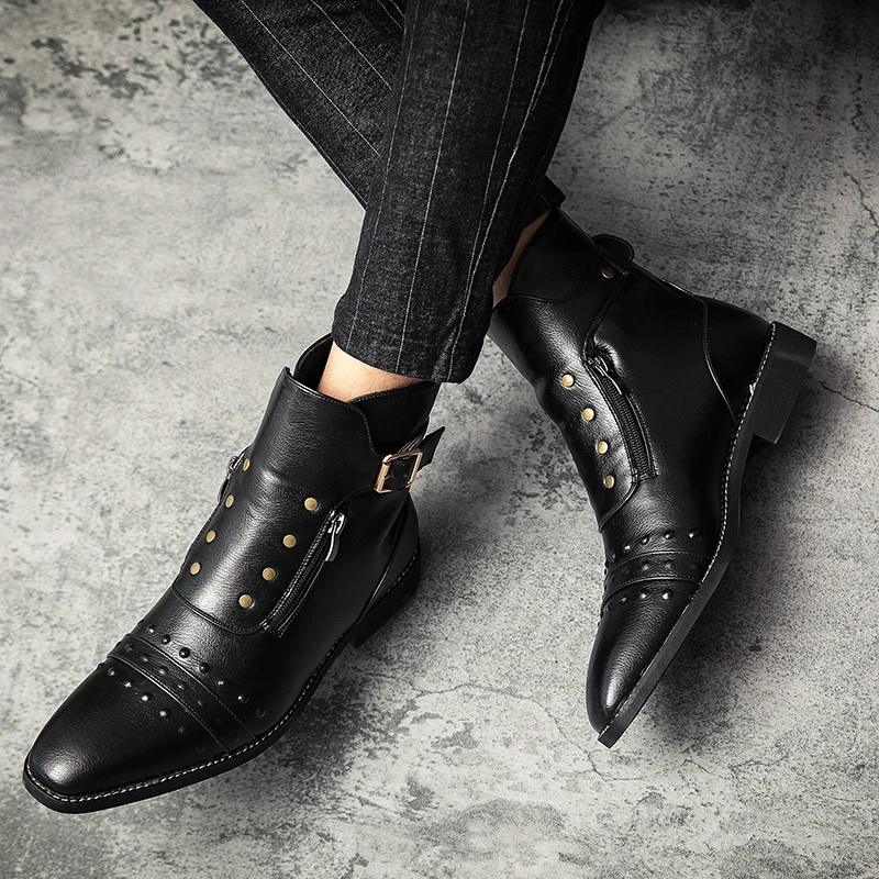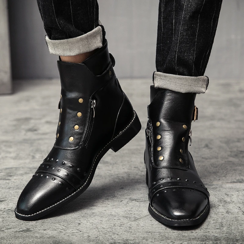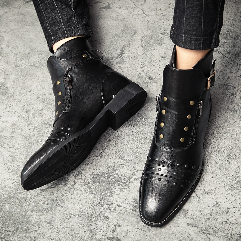 Formal Red Yellow Chelsea Boots for Men Black Business Man Handmade Mens Short Boots Round Toe Slip-On Ankle Boots Free Shipping