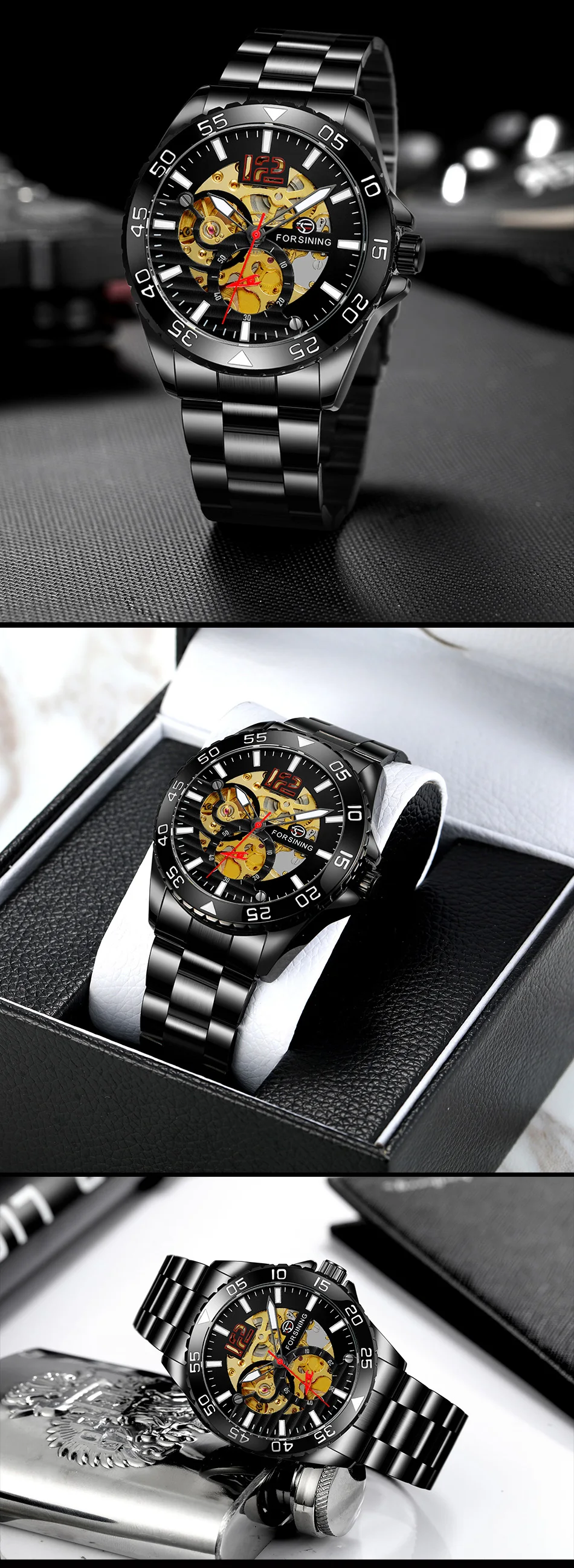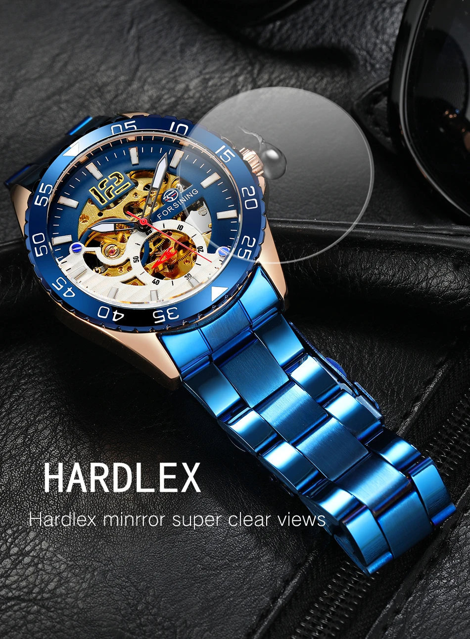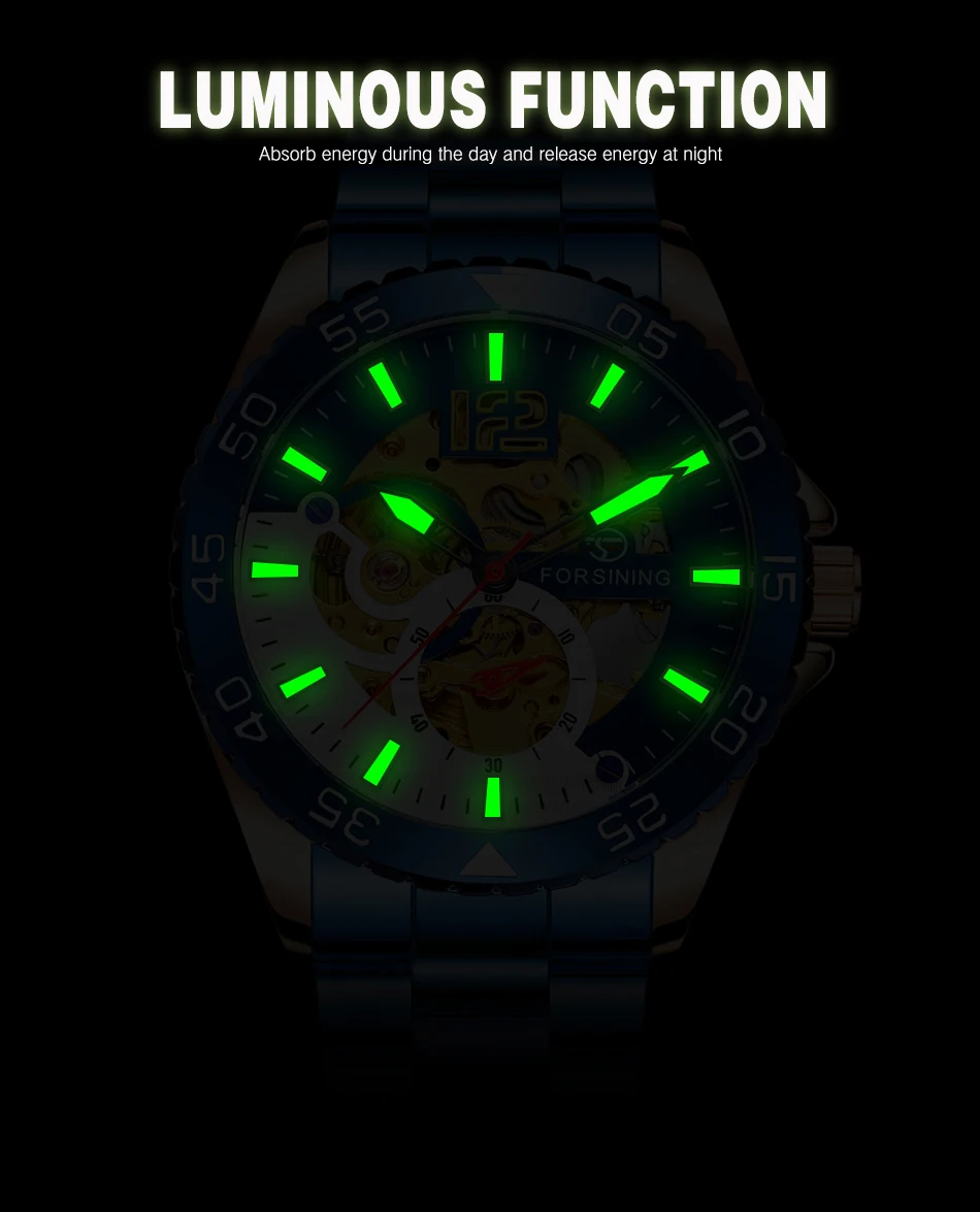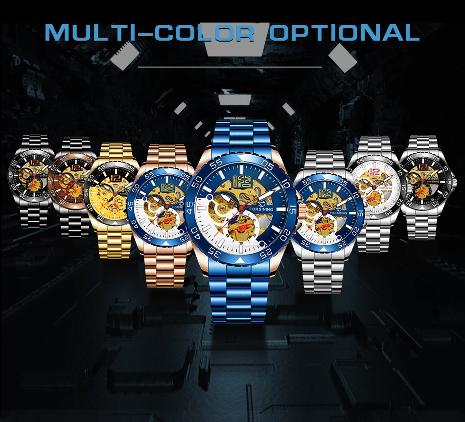 Forsining mechanical watches men's leisure hollow through fully automatic mechanical movement mechanical wrist watch steel band watch