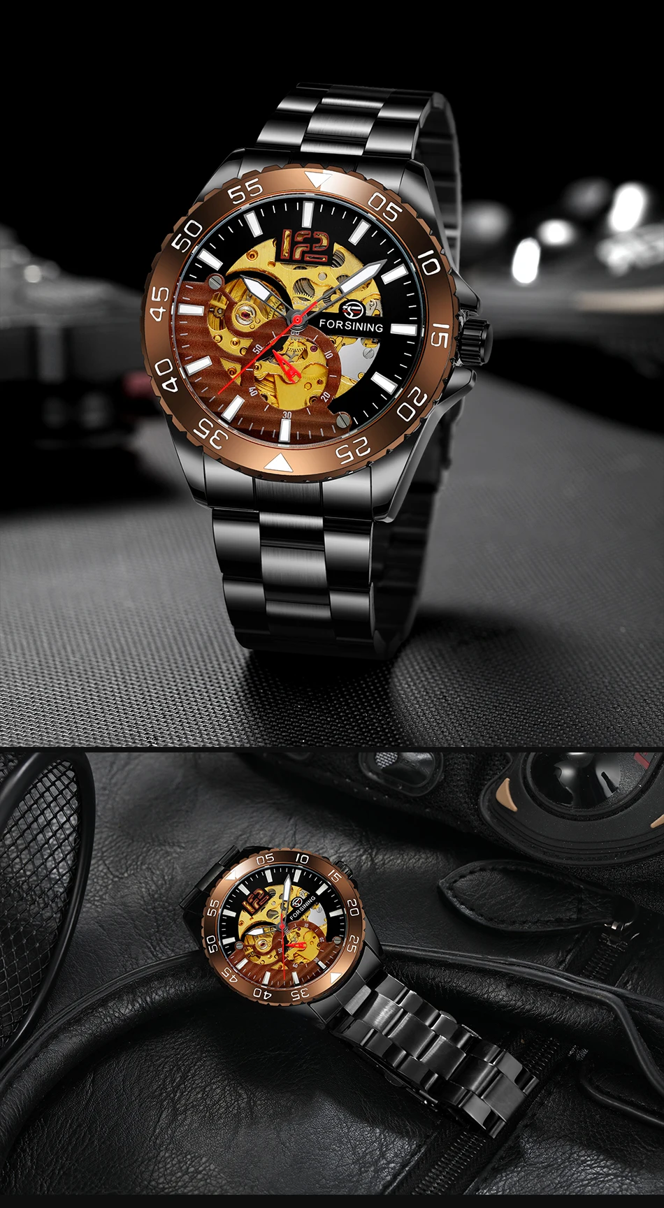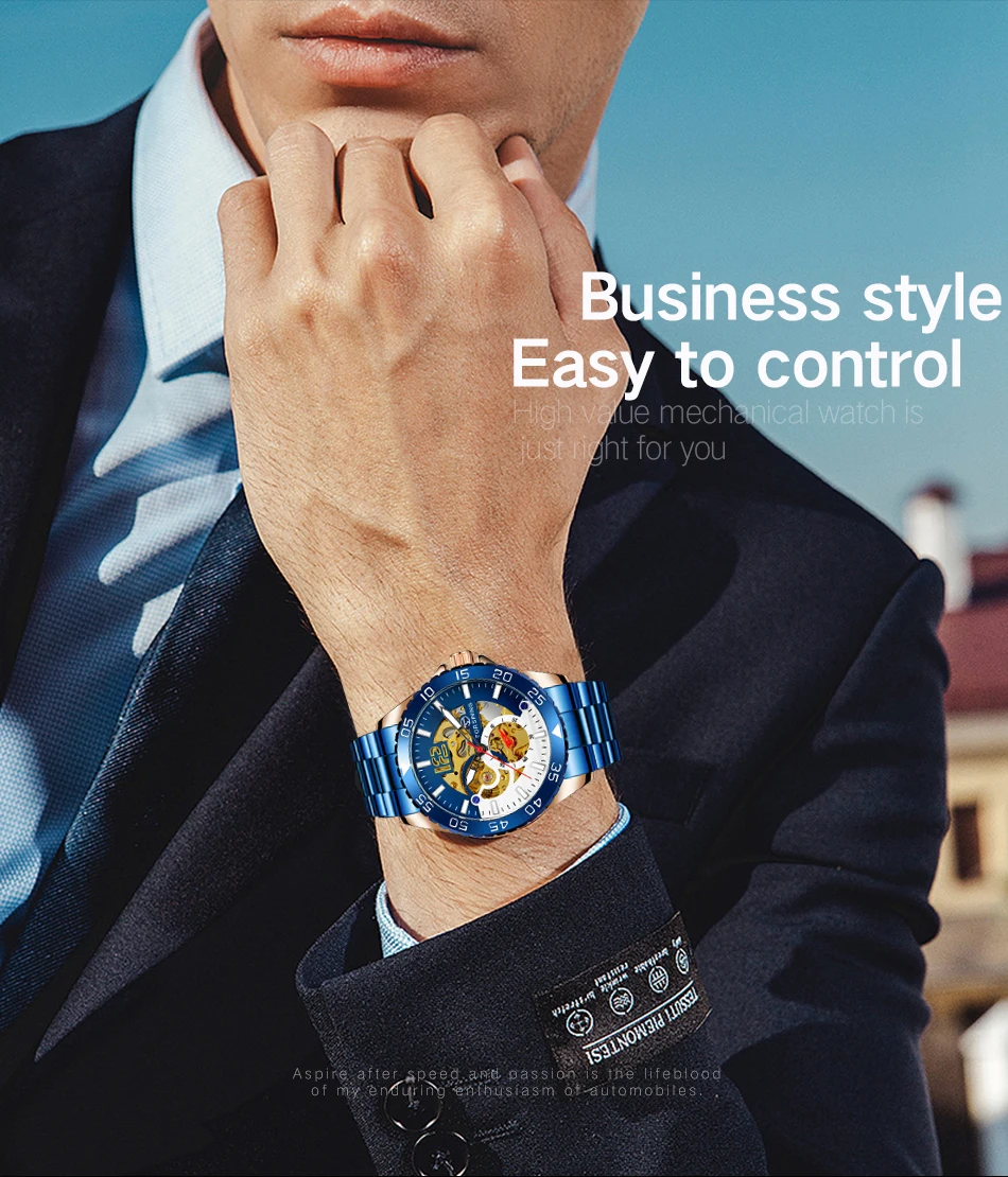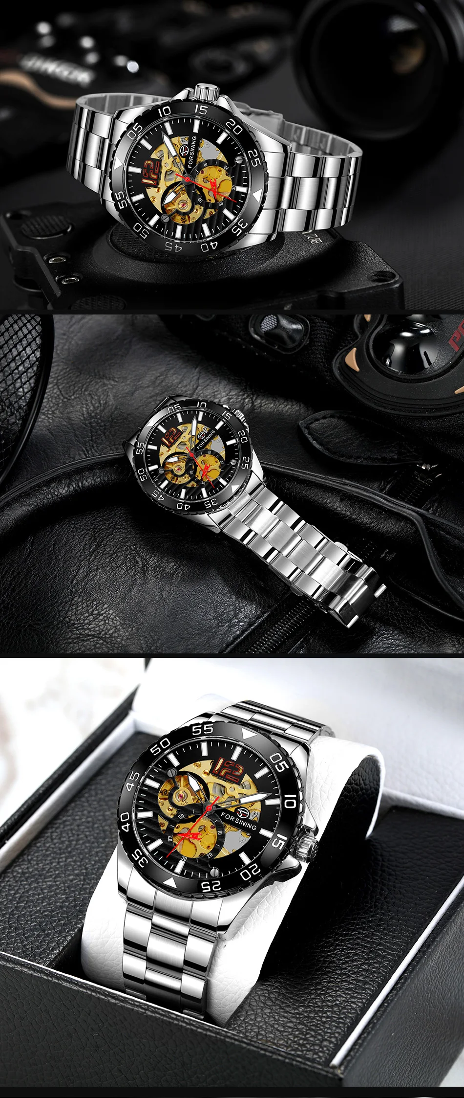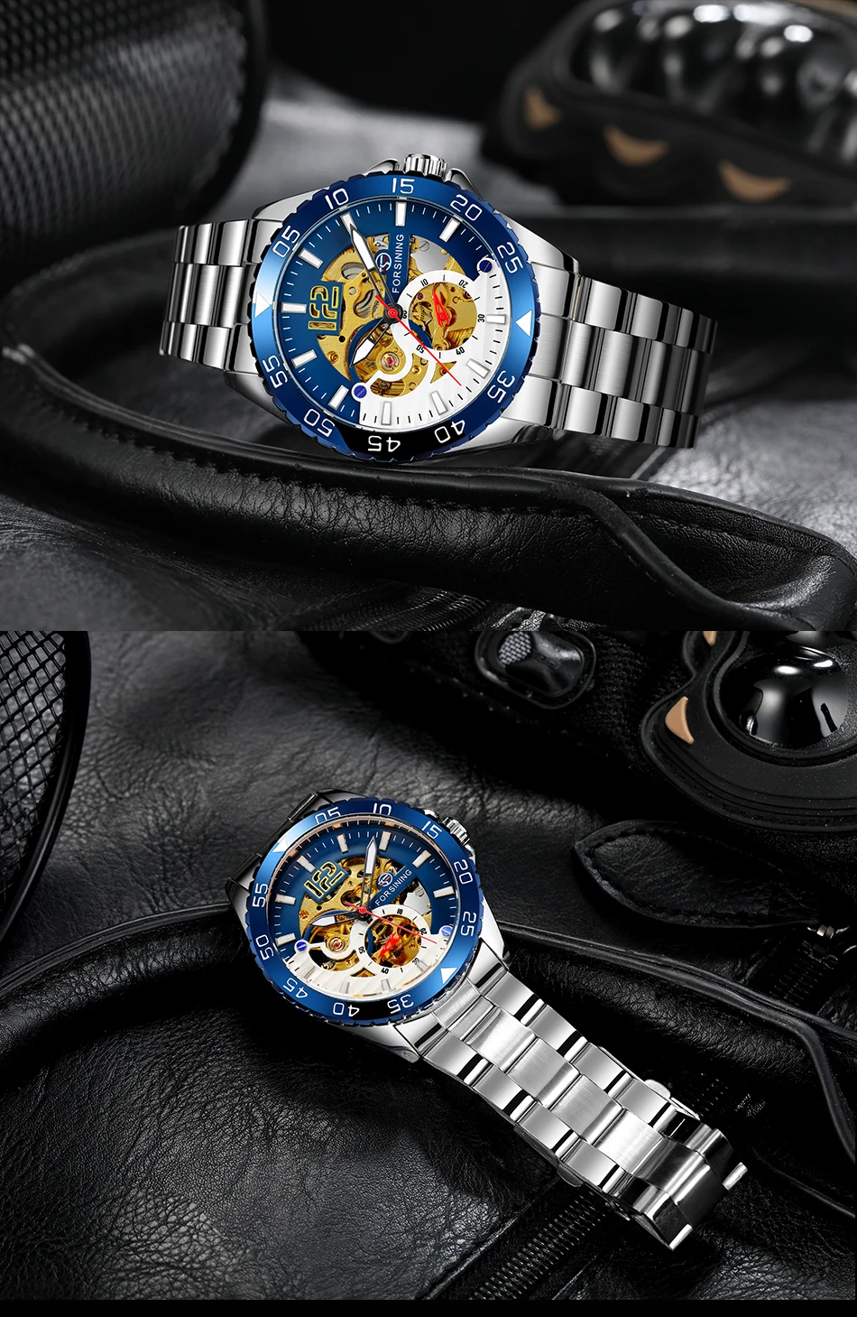 Forsining mechanical watches men's leisure hollow through fully automatic mechanical movement mechanical wrist watch steel band watch
