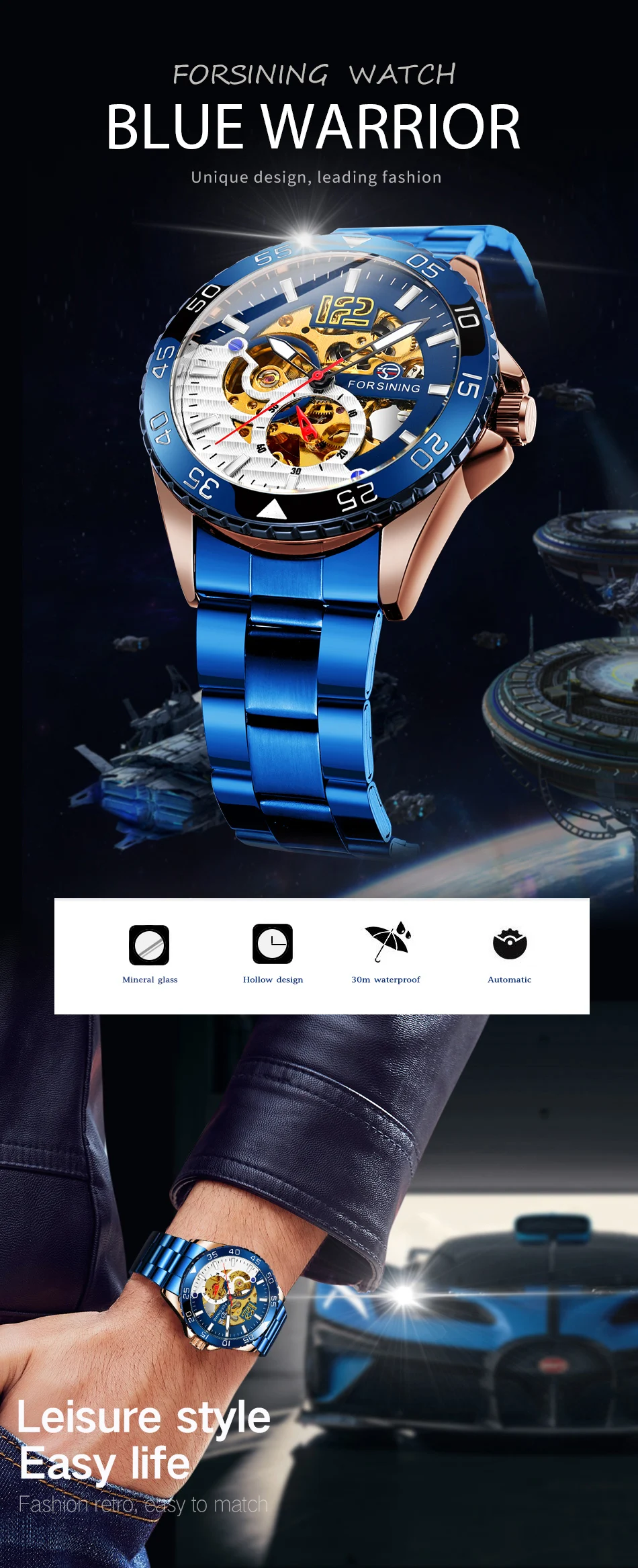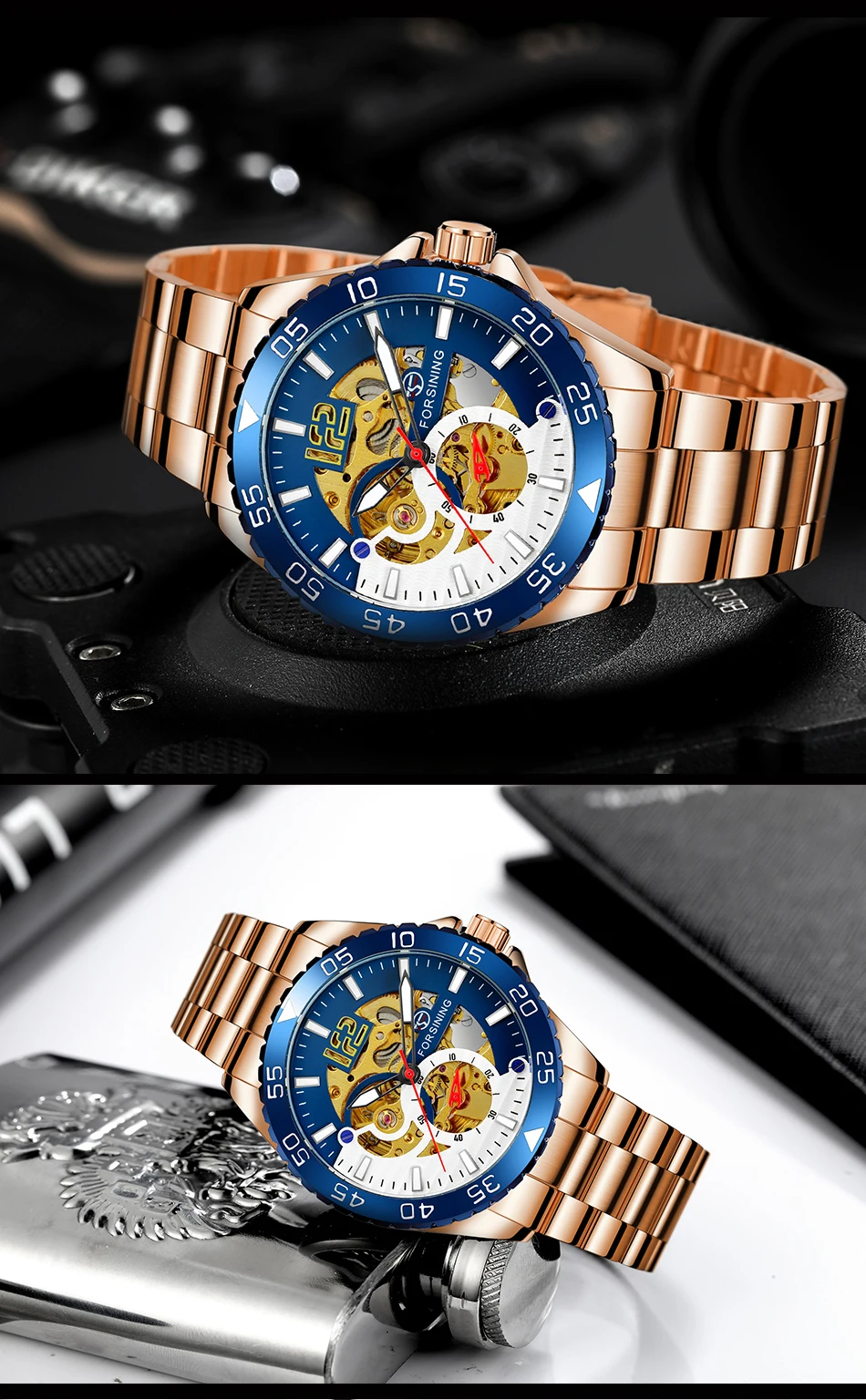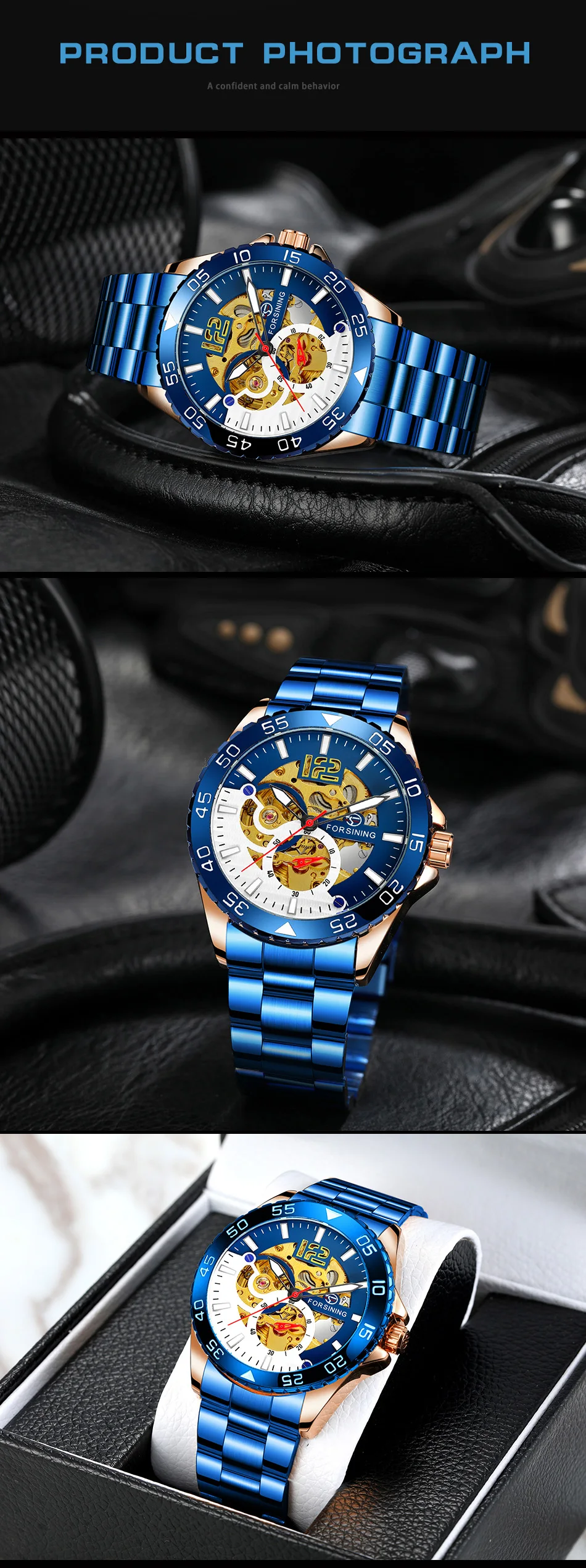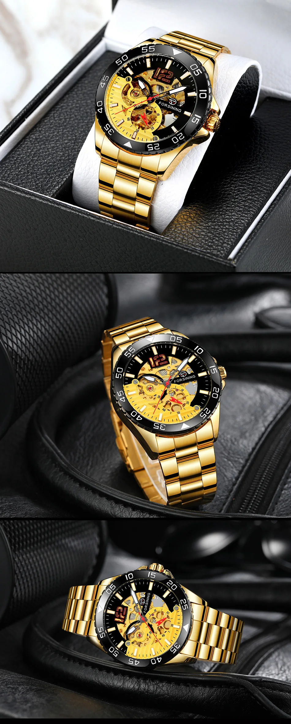 Forsining mechanical watches men's leisure hollow through fully automatic mechanical movement mechanical wrist watch steel band watch
