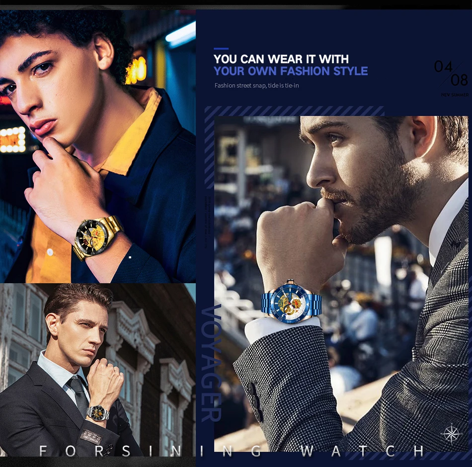 Forsining mechanical watches men's leisure hollow through fully automatic mechanical movement mechanical wrist watch steel band