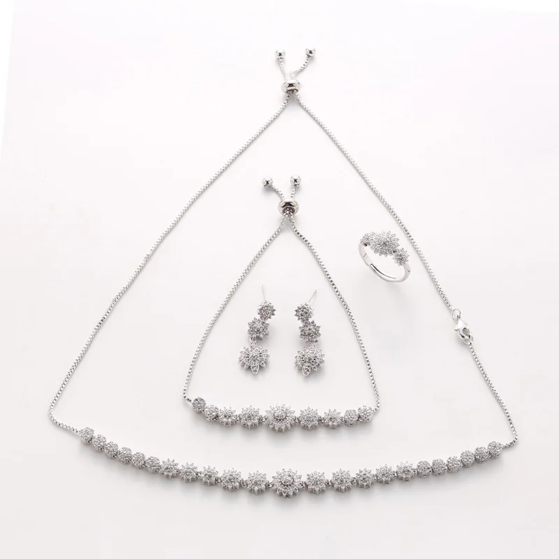 Hadiyana Fashion Bridal Wedding Jewelry Set Of Four Necklace Earrings Ring Bracelet Set Micro Inlaid Zircon Jewelry Sets TZ8079
