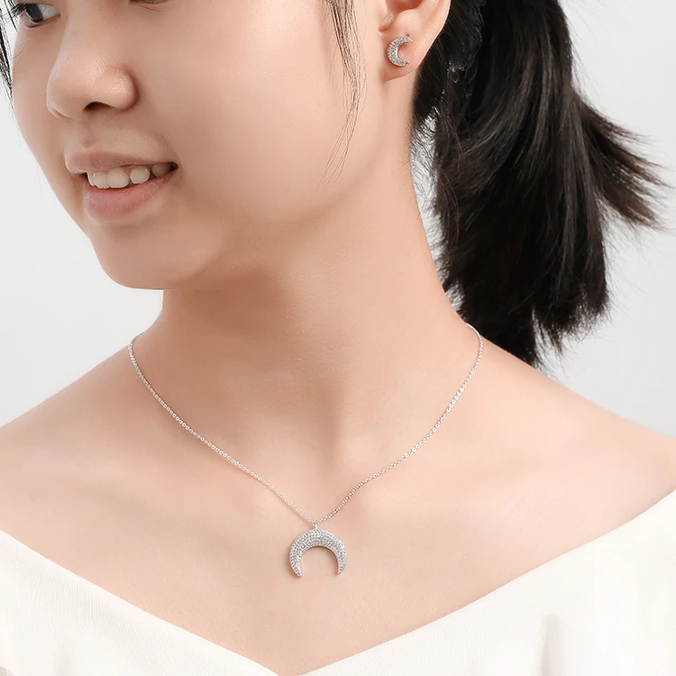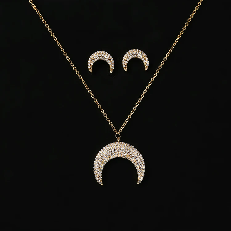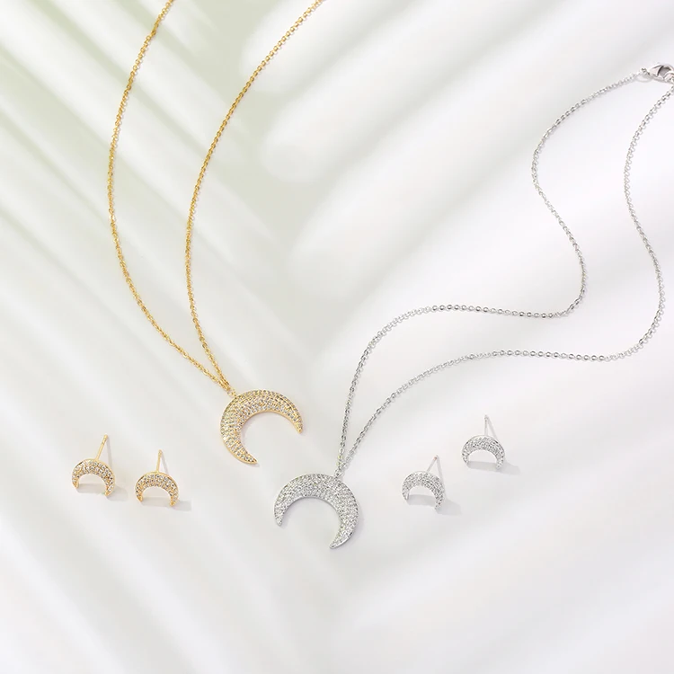 Jewelry Set HADIYANA Romantic Creative Moon Deaign Necklace And Earring Set For Women Fashion Party CN633 Conjunto de joyas