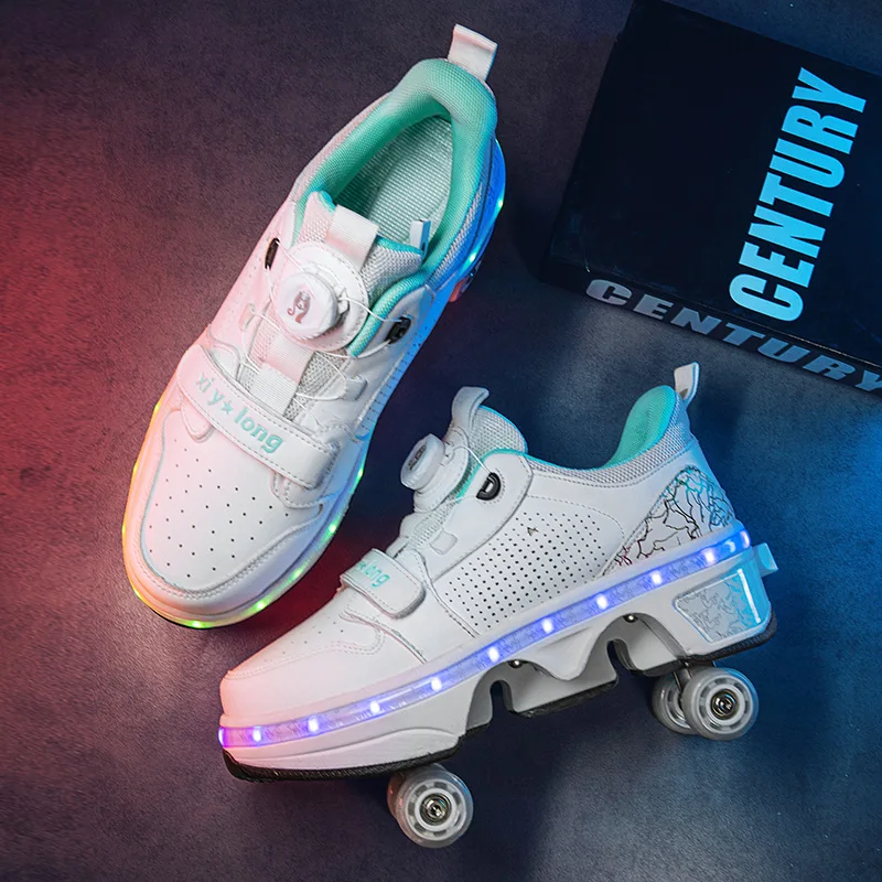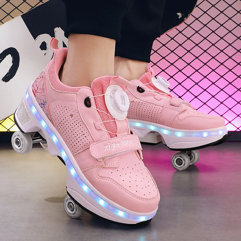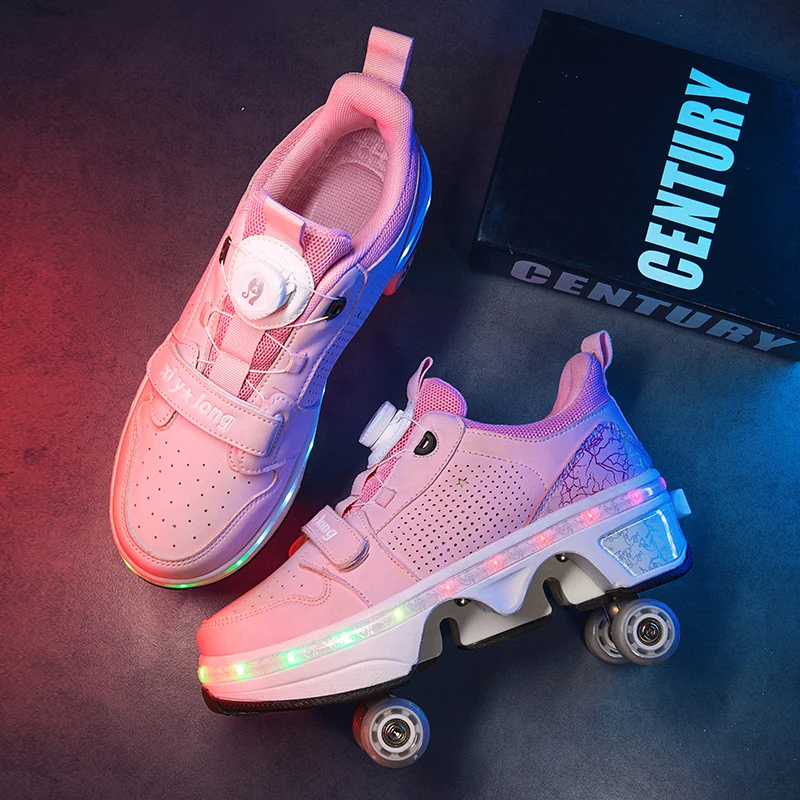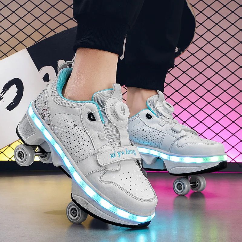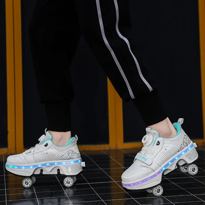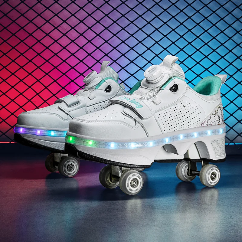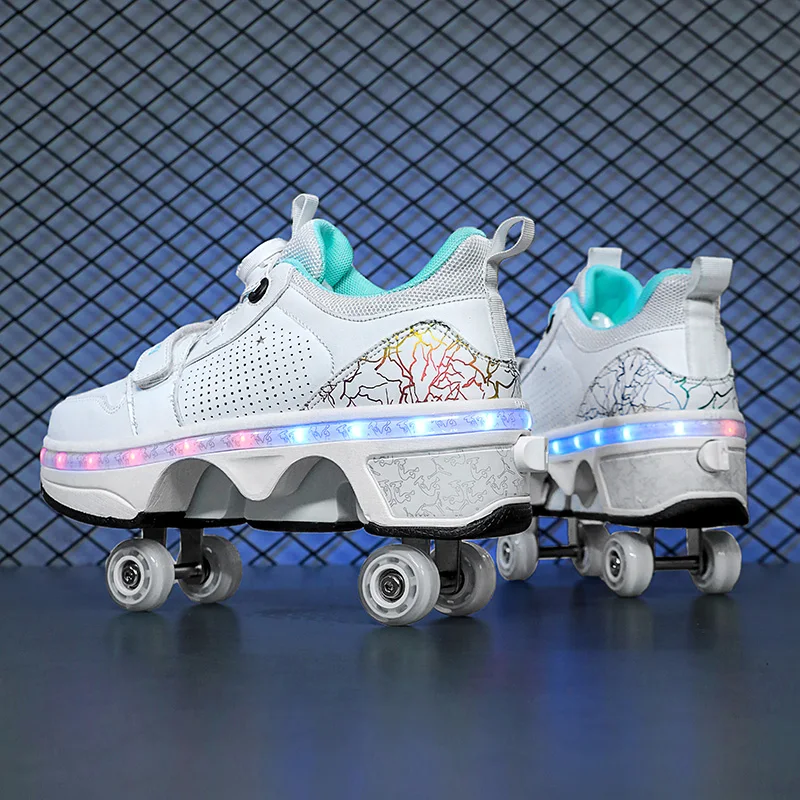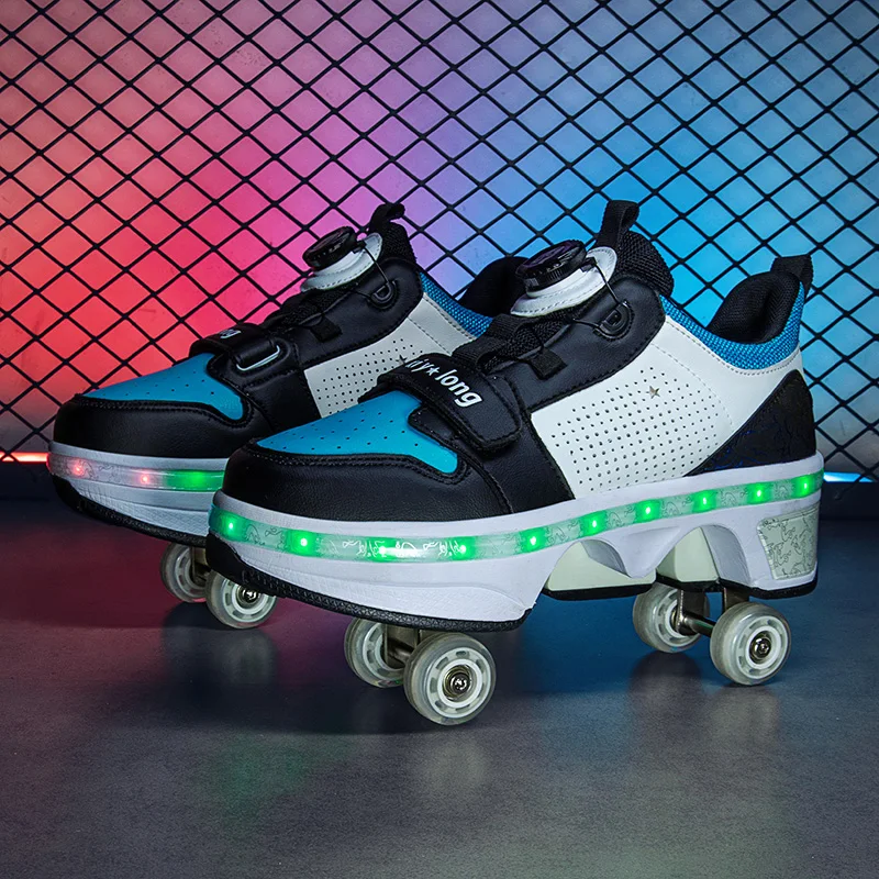 LED Flash Double-Row Four-Wheel Roller Skating Shoes Dual-Use Roller Shoes Men Women Casual Sneakers Sport Walking Running Shoes