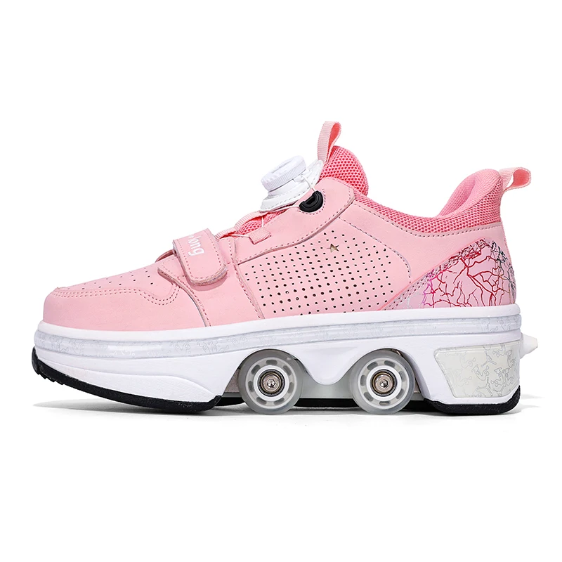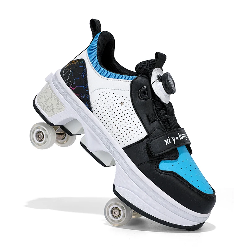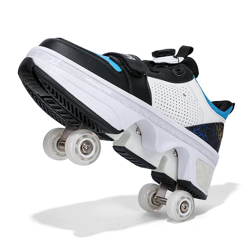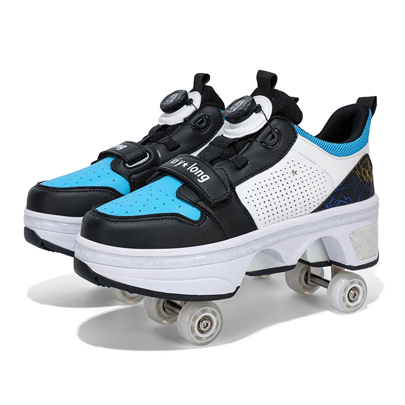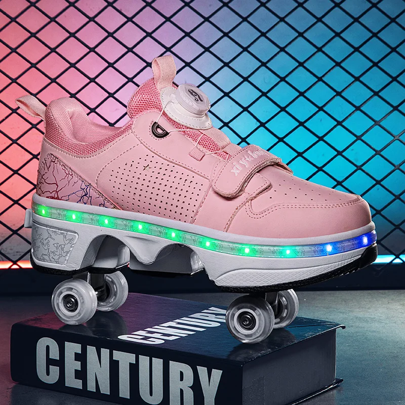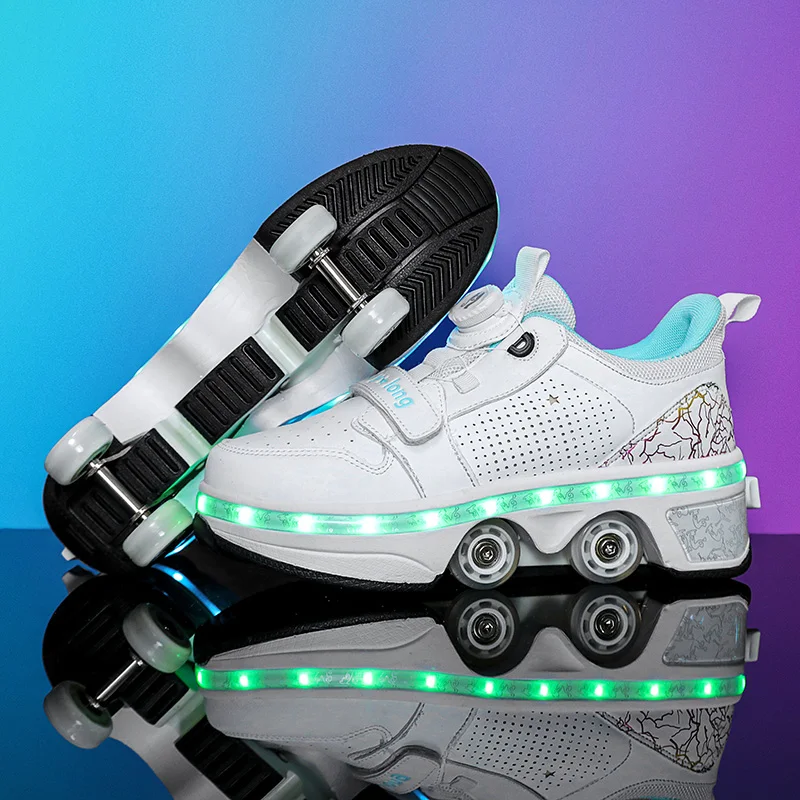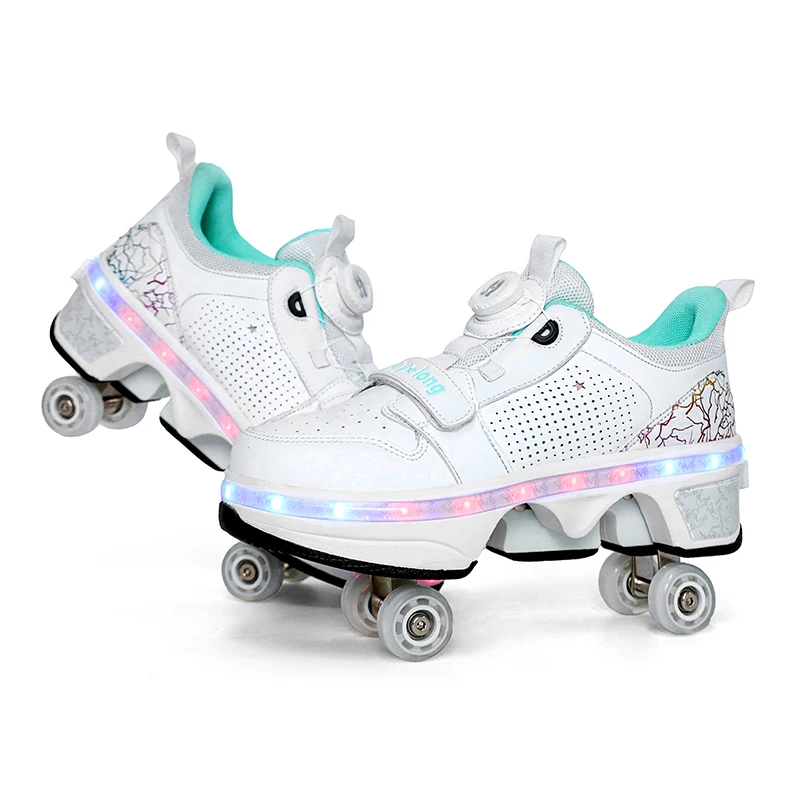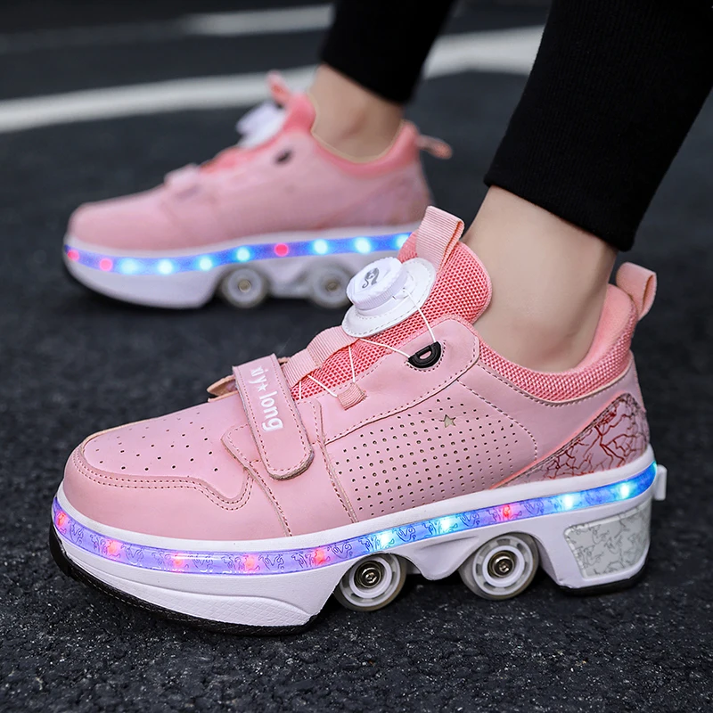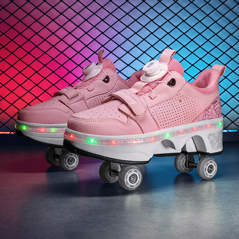 LED Flash Double-Row Four-Wheel Roller Skating Shoes Dual-Use Roller Shoes Men Women Casual Sneakers Sport Walking Running Shoes