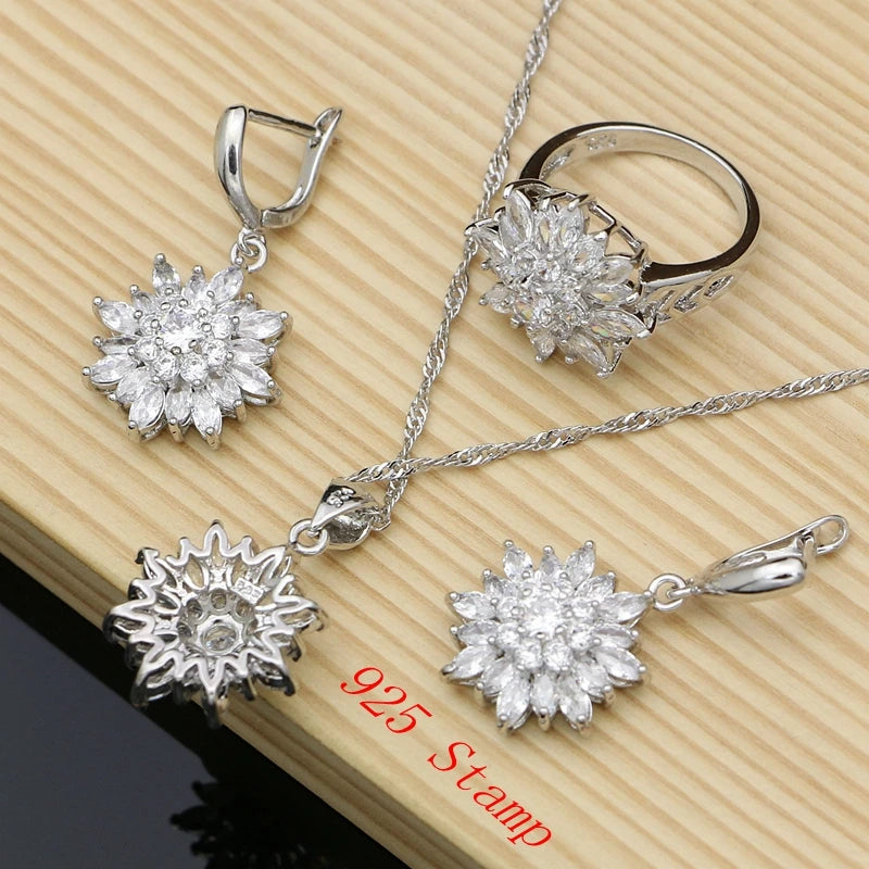 Luxury Flowers 925 Sterling Silver Costume Jewelry Sets for Women Cubic Zirconia Earrings Fashion Wedding Jewelry Necklace Sets