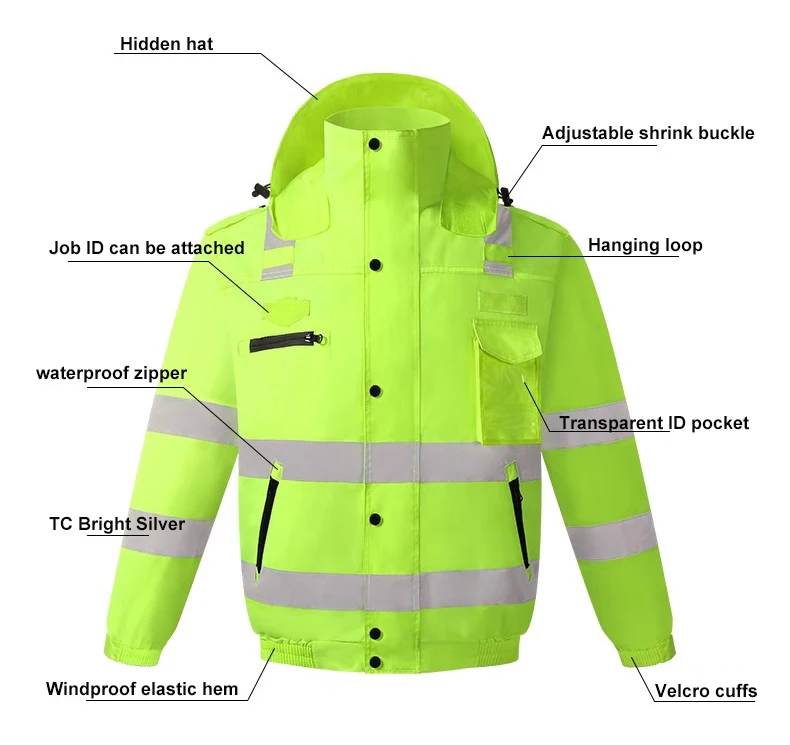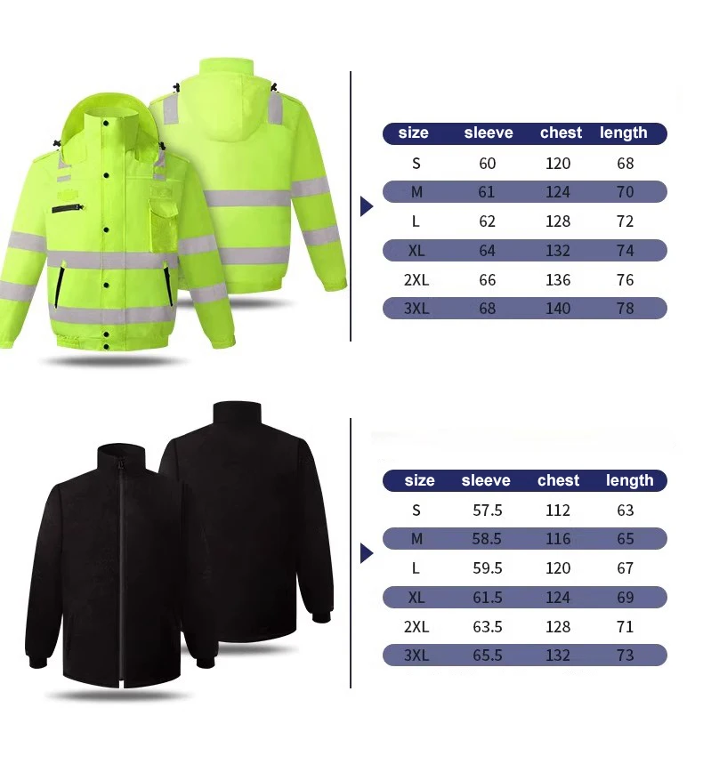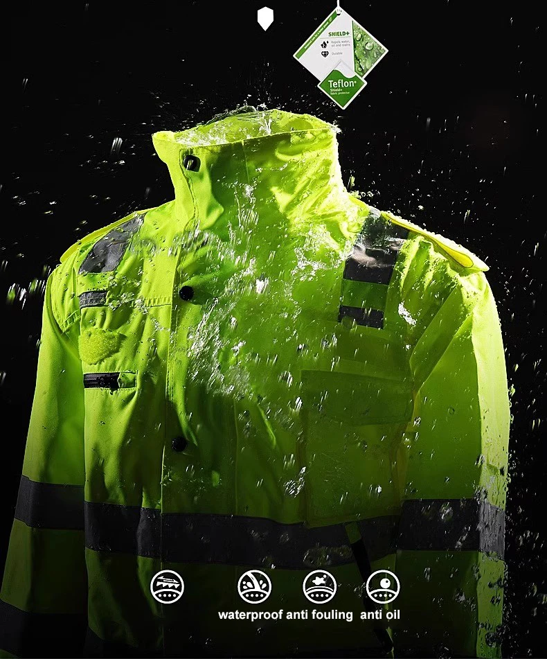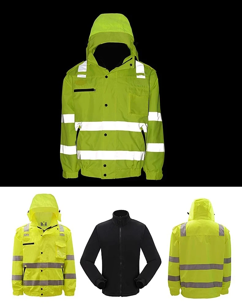 Men Workwear High Visibility Work Jacket Coat Reflective Safety Hooded Coat Wrok Clothing Warm Winter Jackets with Fleece Linner