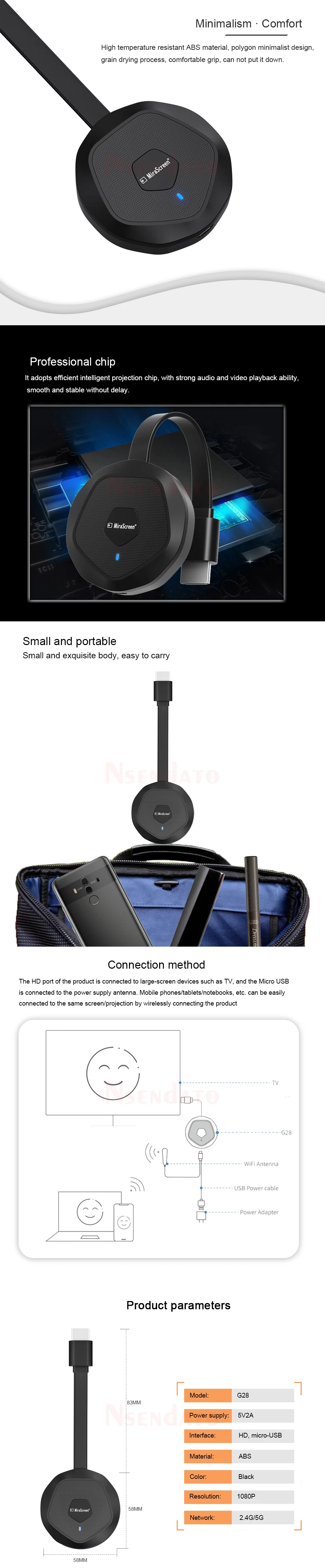 Mirascreen G28 2.4G/5G Wireless WiFi Display TV Dongle Receiver HDMI-compatible TV Stick for DLNA Miracast Android IOS Windows