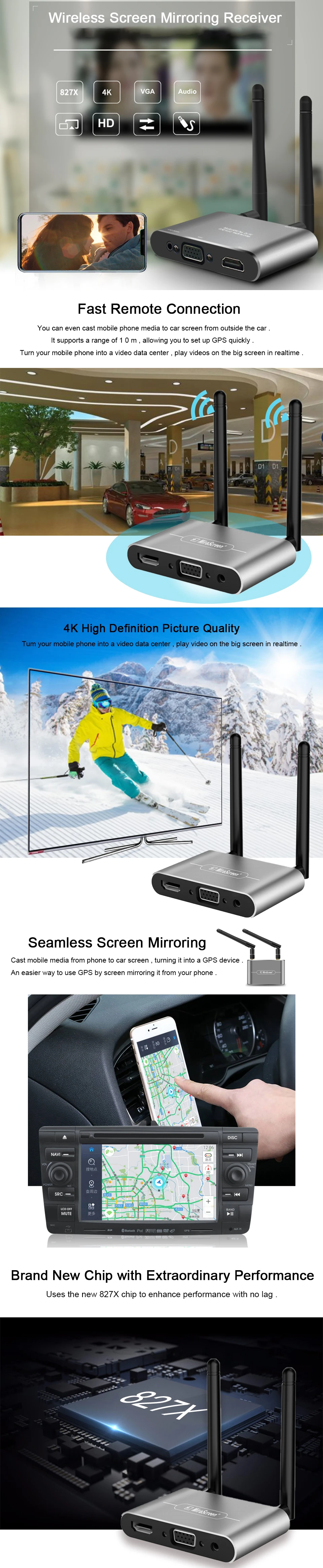 Supports Nsendato Full HD wireless audio and video transmission, 1080P output with HD interface. With AV output, suitable for car display. Uses compact portable deign for easy carrying.