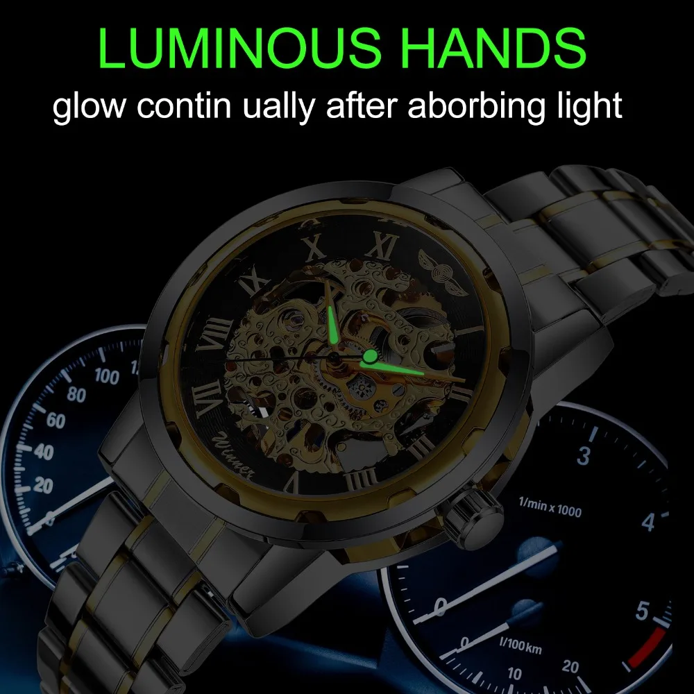 New 2020 Top Brand Luxury WINNER Golden Watches Mens Skeleton Mechanical Watches Stainless Steel Strap Classic Wristwatch COLORs