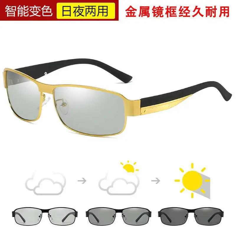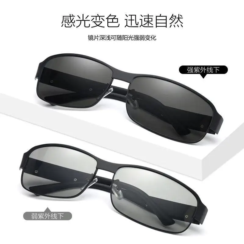 Photochromic Polarized rectangle Sunglasses Men Discoloration Eyewear Anti Glare UV400 Glasses Oculos
