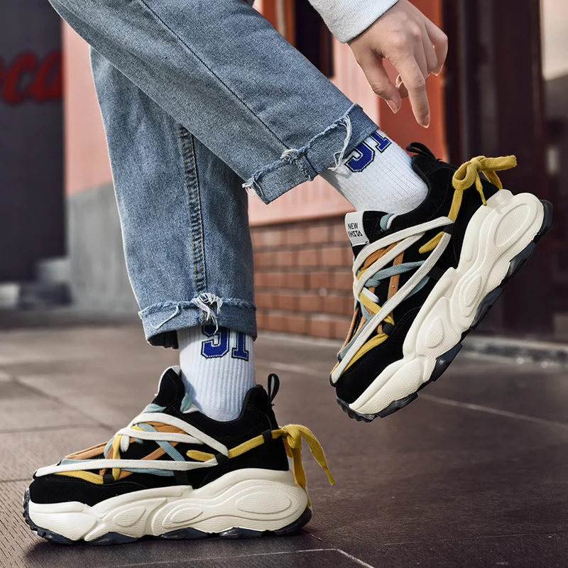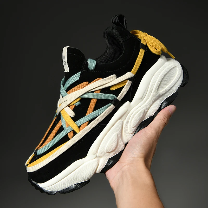 Platform Thick Sole Casual Sneakers Man Shoes Trainers Lace Up Flats for Men Running Increase Heels Chunky Designer Womens Shoes