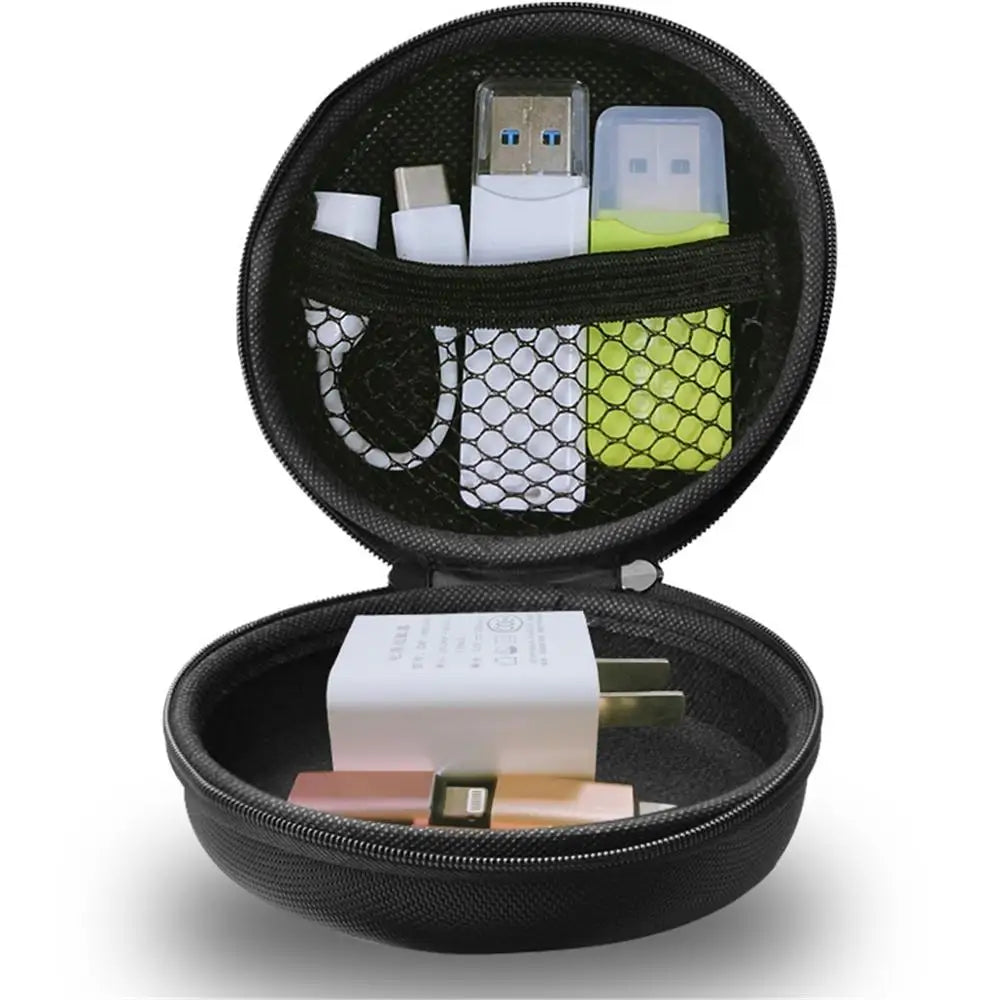 Portátil mini redondo caso de armazenamento duro fone de ouvido para fone de ouvido sd tf cartões para iphone xiaomi samsung cabo usb sacos de fone de ouvido