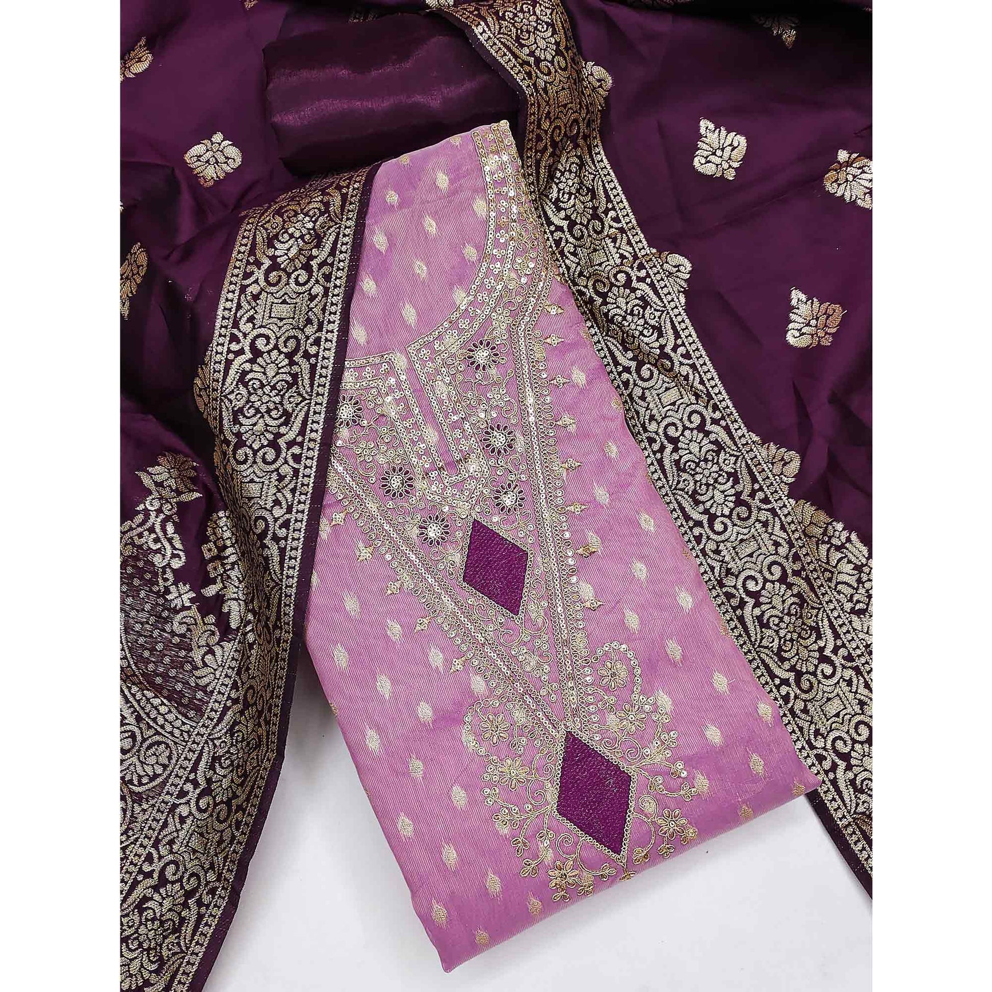 Purple Woven Banarasi Silk Dress Material With Intricate Cording & Sequin Embellishments