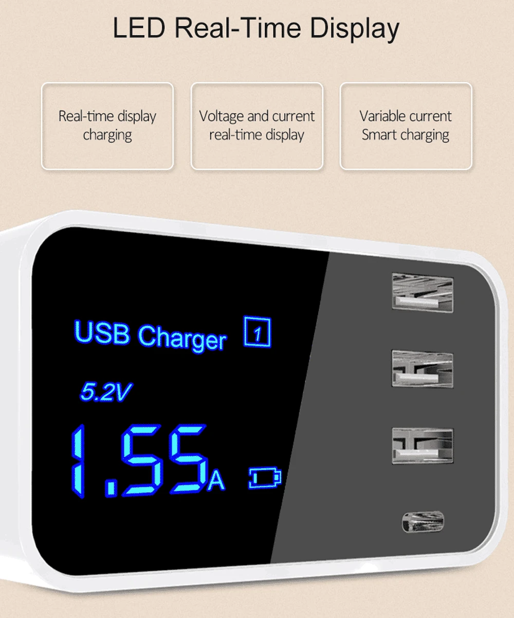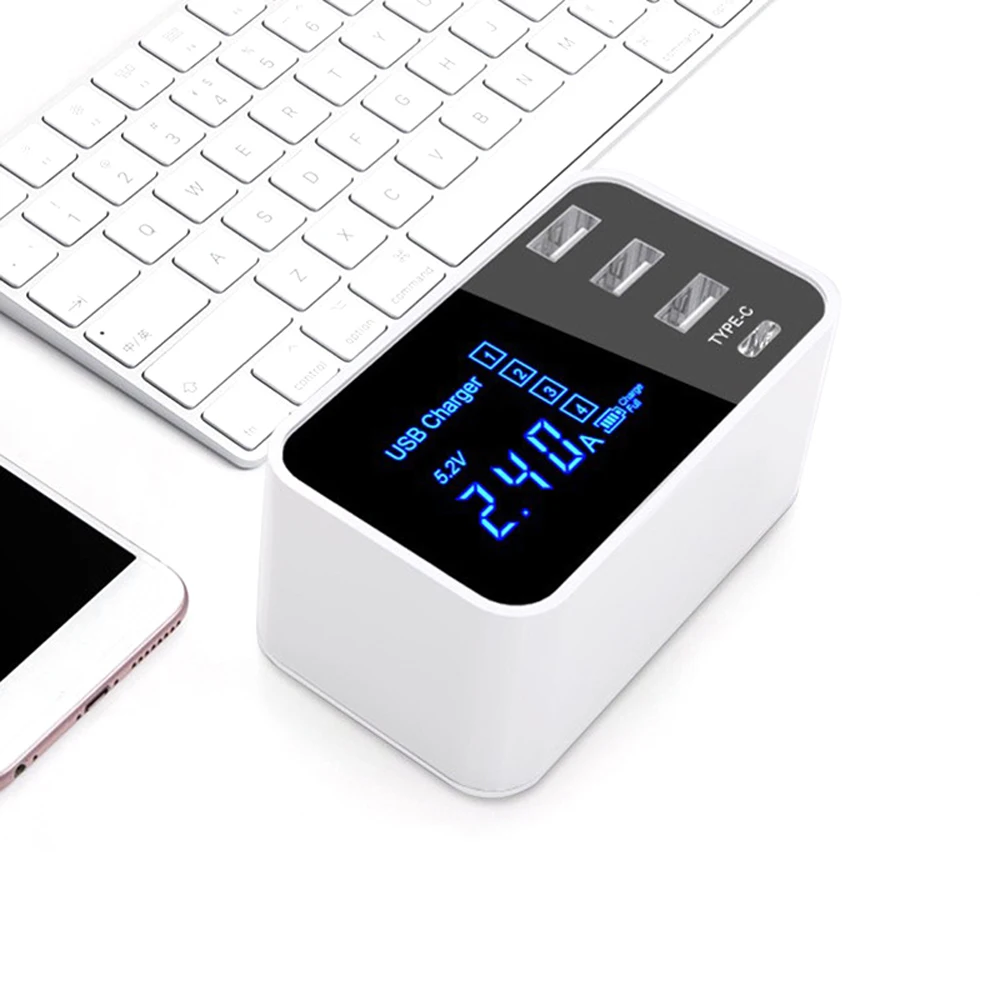 Quick Charge Type C USB Wall Charger Dock Led Display Fast Mobile Phone Tablet Charger For iPhone Samsung USB Adapter EU US Plug