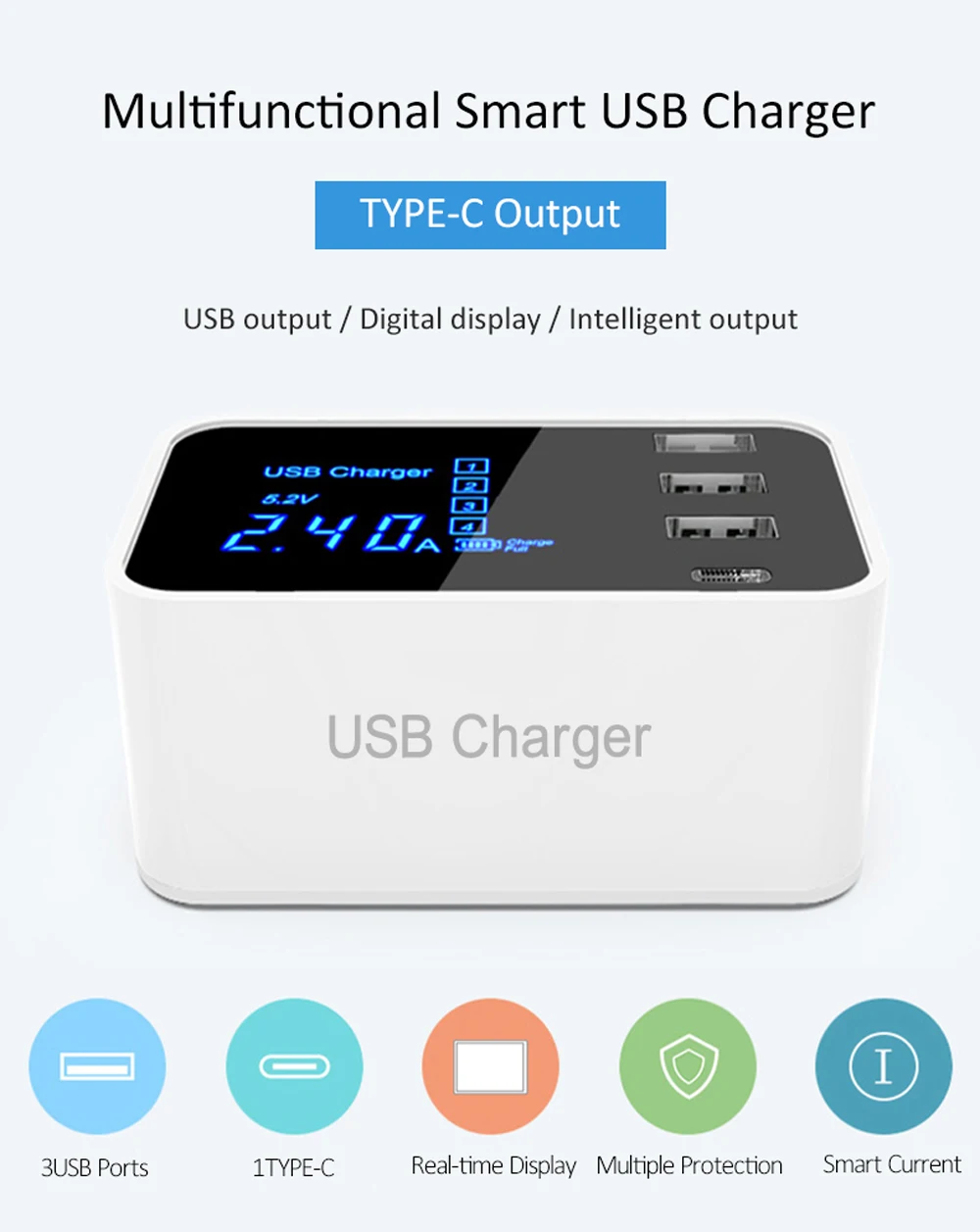 3USB ports with various output capacity and 1 type c port to meet your needs