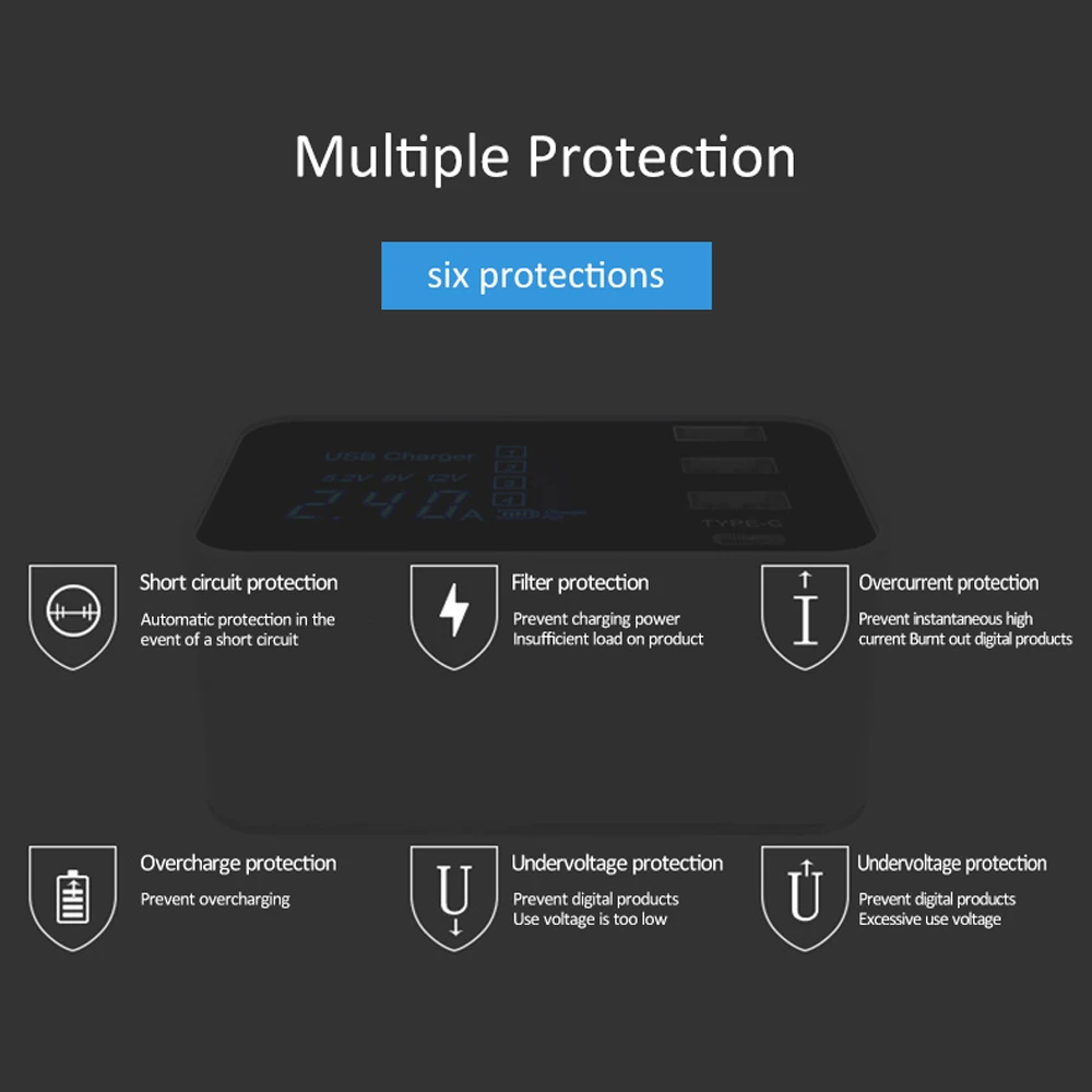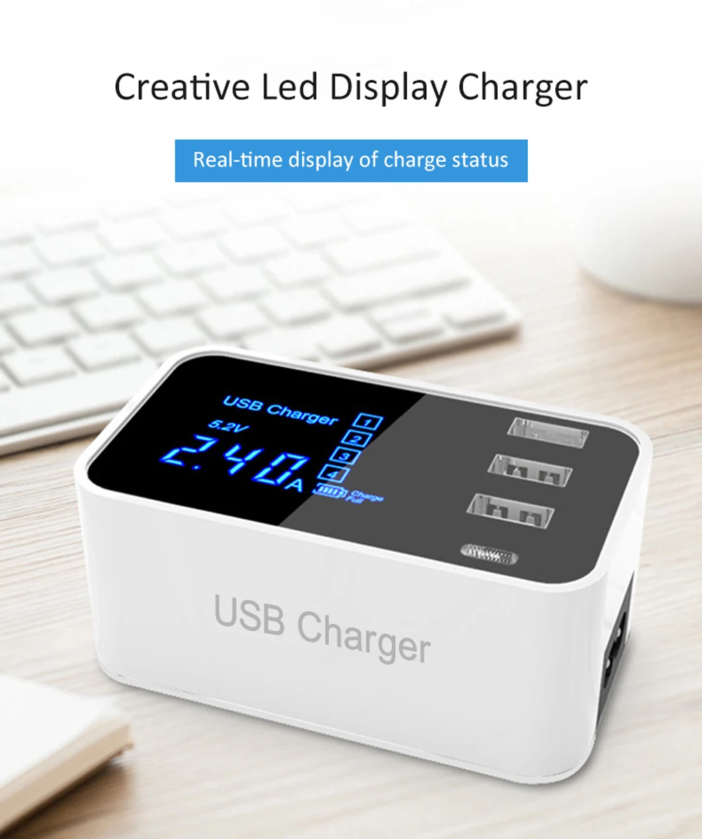 Quick Charge Type C USB Wall Charger Dock Led Display Fast Mobile Phone Tablet Charger For iPhone Samsung9 Multi USB HUB EU Plug