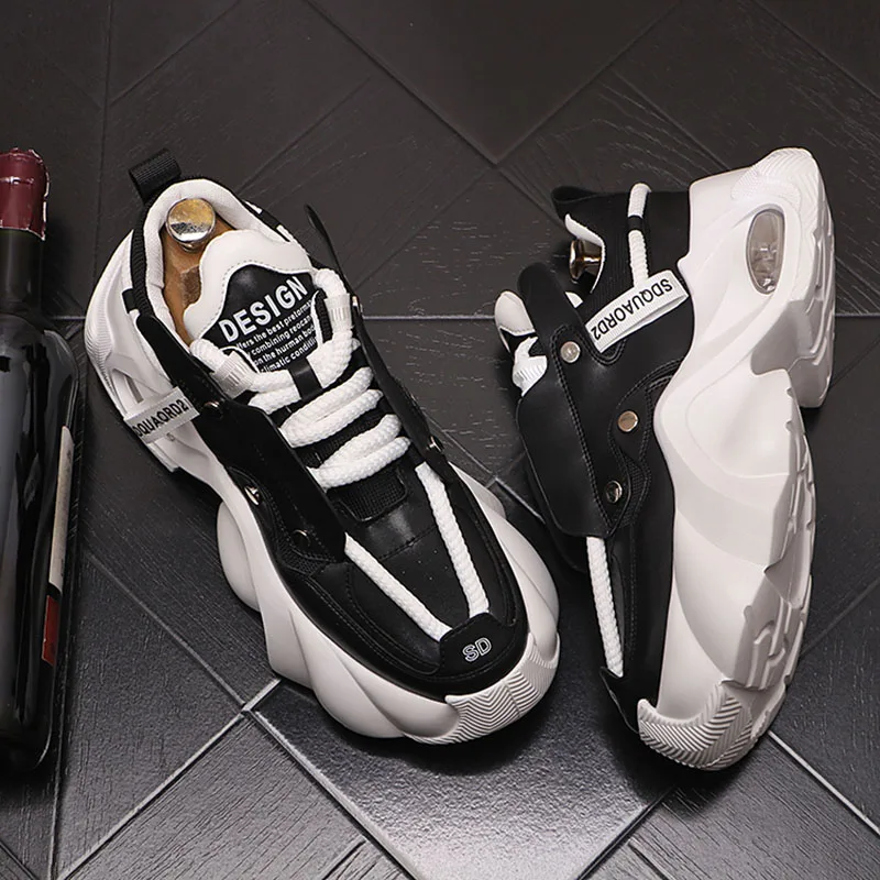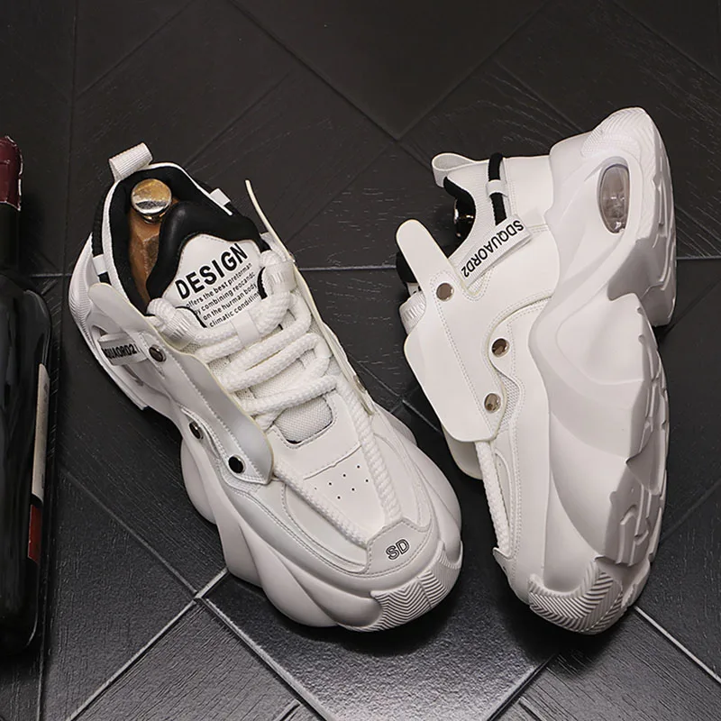 Sapato casual de fundo grosso masculino, tênis de caminhada esportiva, mocassins, marca designer, nova moda