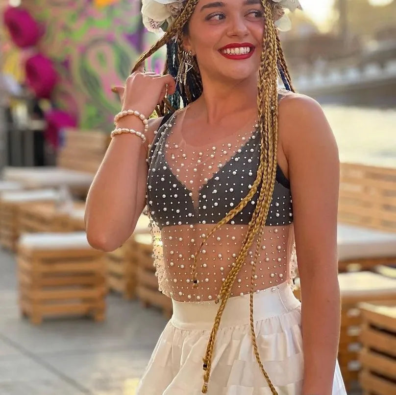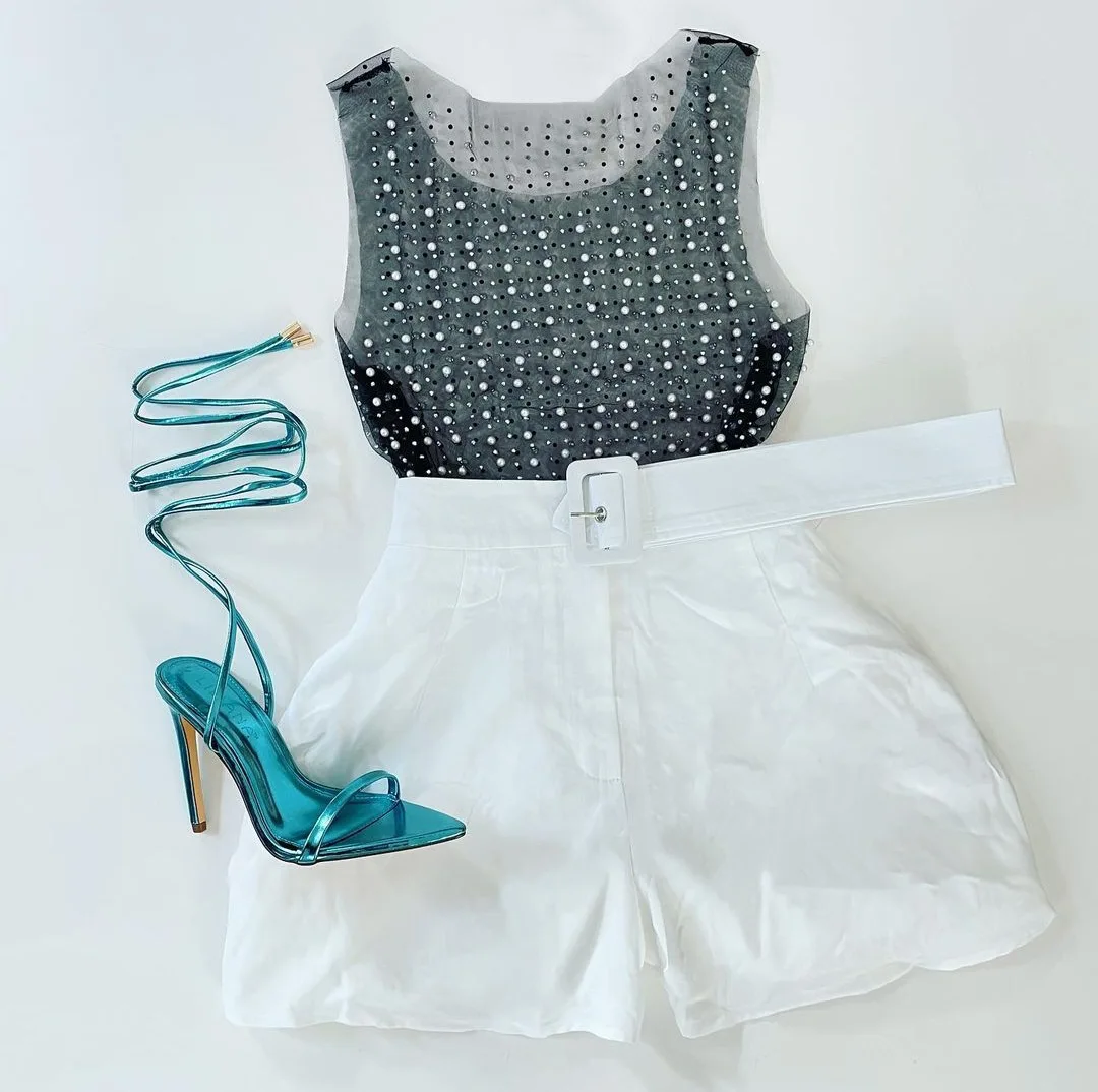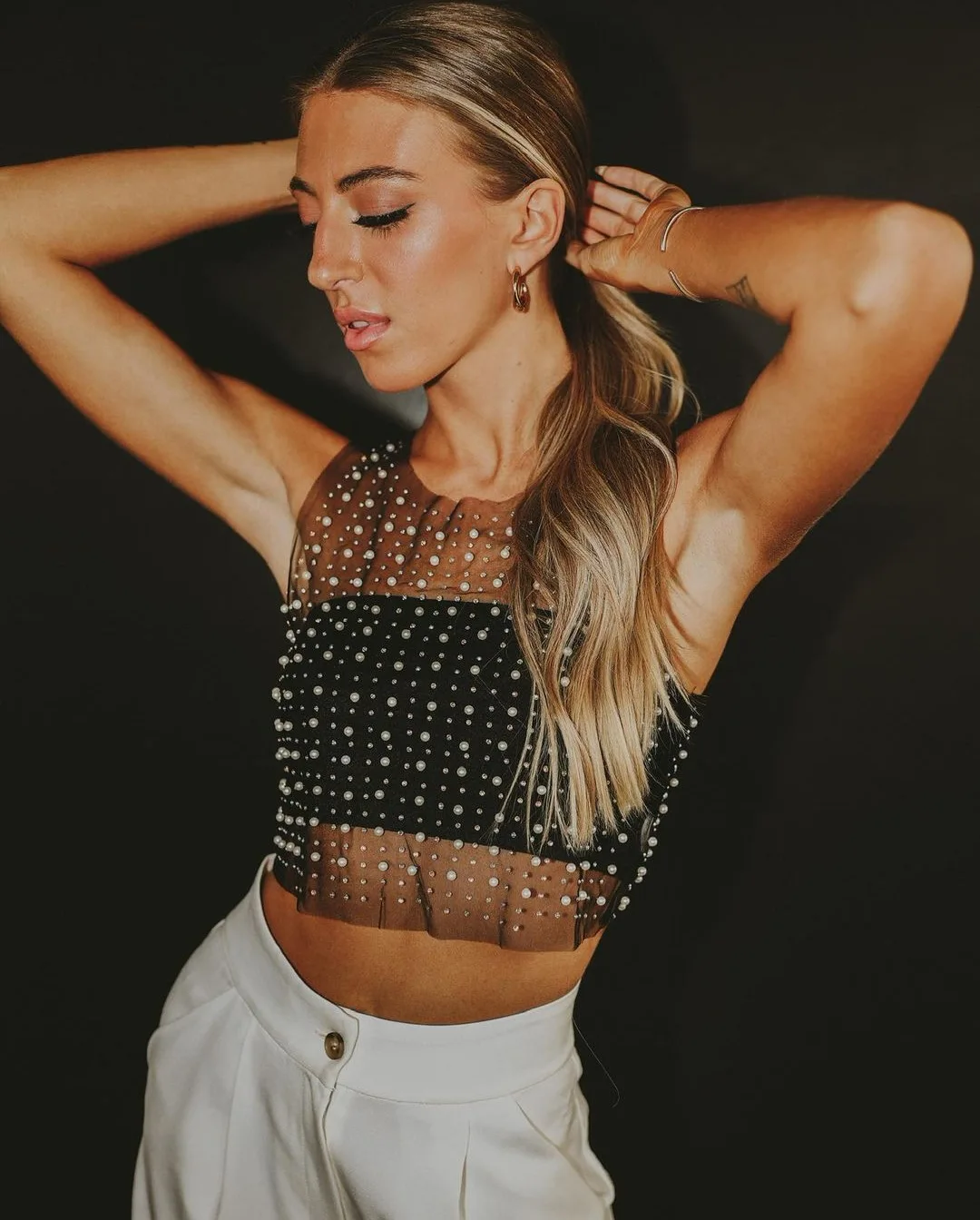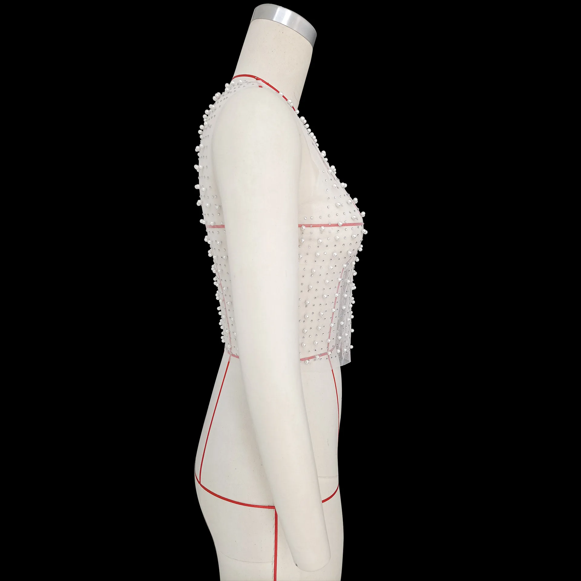 Sexy 3D Diamonds Mesh Cropped Tank Tops Women Summer Cover Up Beachwear See Through Rhinestone Net Party Club Tank Top Clothing
