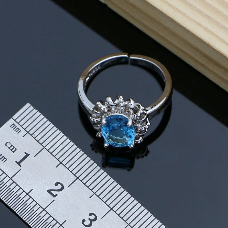 Silver 925 Jewelry Sets for Women Sky Blue Crystal Birthstone Fashion Jewelry Gift for Her Party Necklace Sets