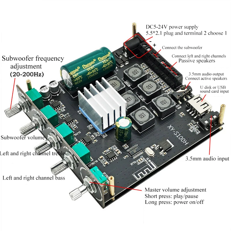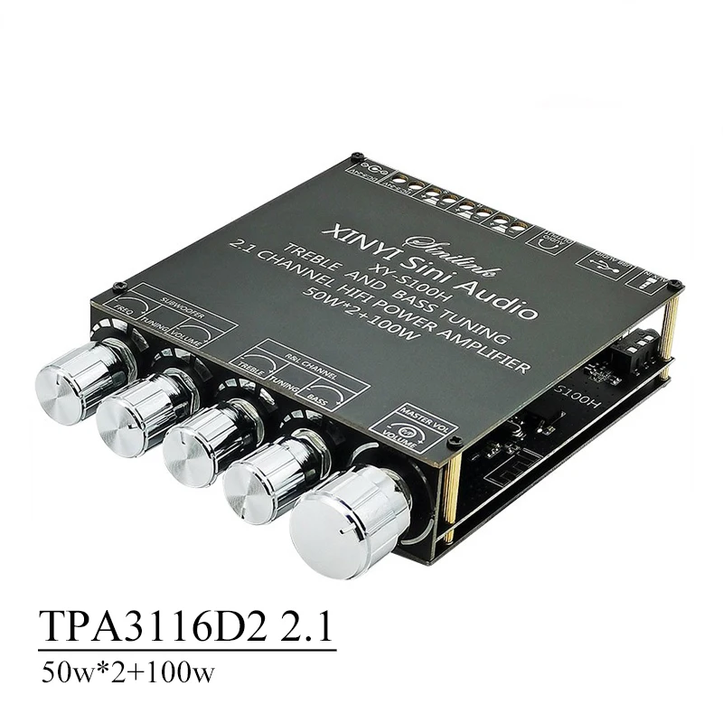 TPA3116D2 Digital Power Amplifier Board 2.1 Channel, U Disk Hi-Fi Audio Bluetooth 5.0 2*50W+100W Super Bass Audio Module