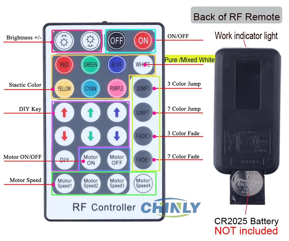 Light Change Mode: Single color ( Mix White,Pure Wihite,Red,Green,Blue,Yellow,Ice blue,Pink+DIY color),RGB light changing Jump,Fade,Four Level-Speed Twinkle ,Brightness Control,Mode speed,
