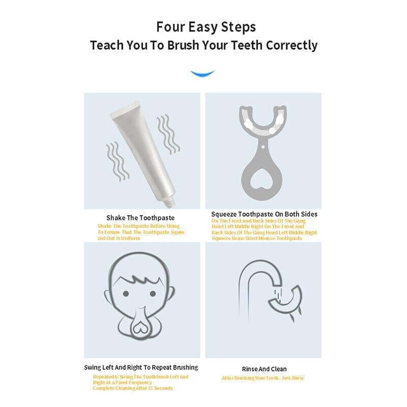 U-shaped toothbrush | U‑shaped baby toothbrush | kids U‑shaped tooth cleaner | children U‑shaped brush | toddler oral cleaning tool | 360° toothbrush kids | U‑shaped silicone toothbrush | U‑shaped double‑sided toothbrush | baby oral care instrument | U‑shaped toddler brush | easy brush for toddlers | space‑saving kids toothbrush